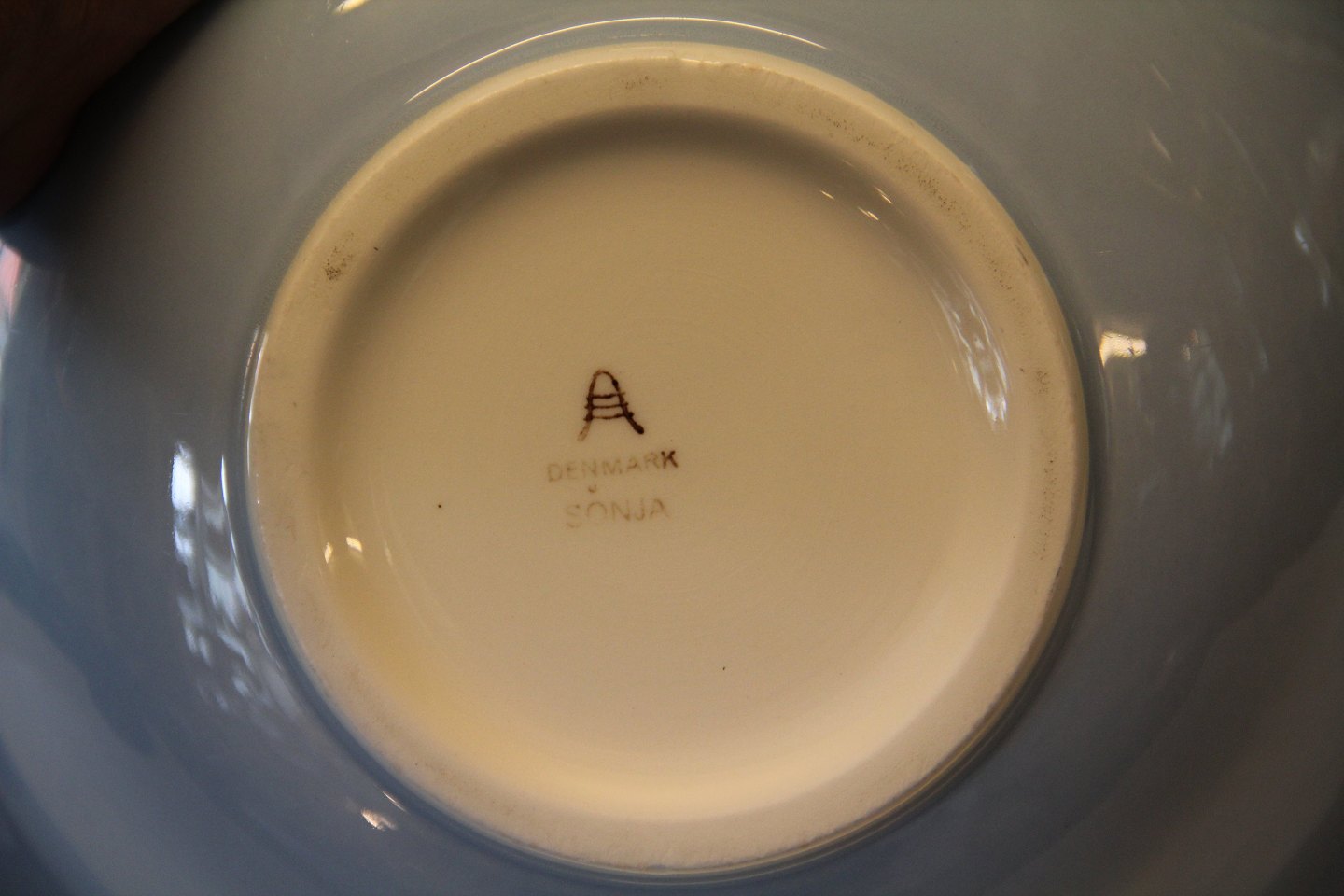 Royal Copenhagen Aluminia fajance Lyseblå Sonja Stel Rund kartoffelskål med kant 7 x 25 cm