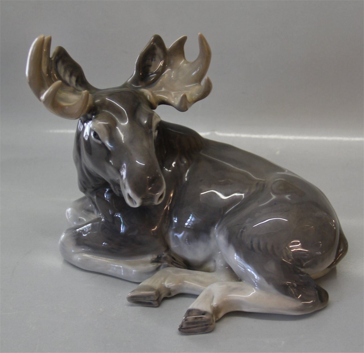 Description: Royal Copenhagen Moose 2813 RC Elk Design Knud Kyhn 1928 21 x 24 cm In mint and nice condition