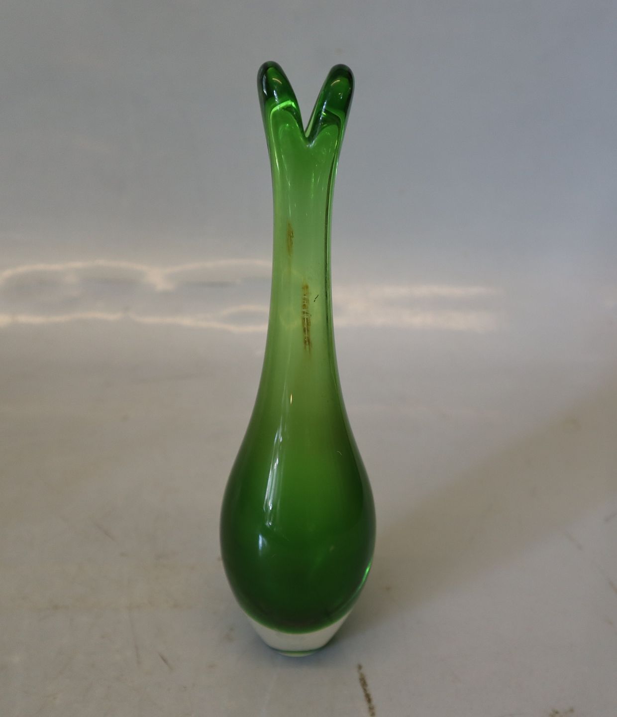 : Næbvase Holmegaard 21 cm mundblæst grønt glas I hel og fin stand
