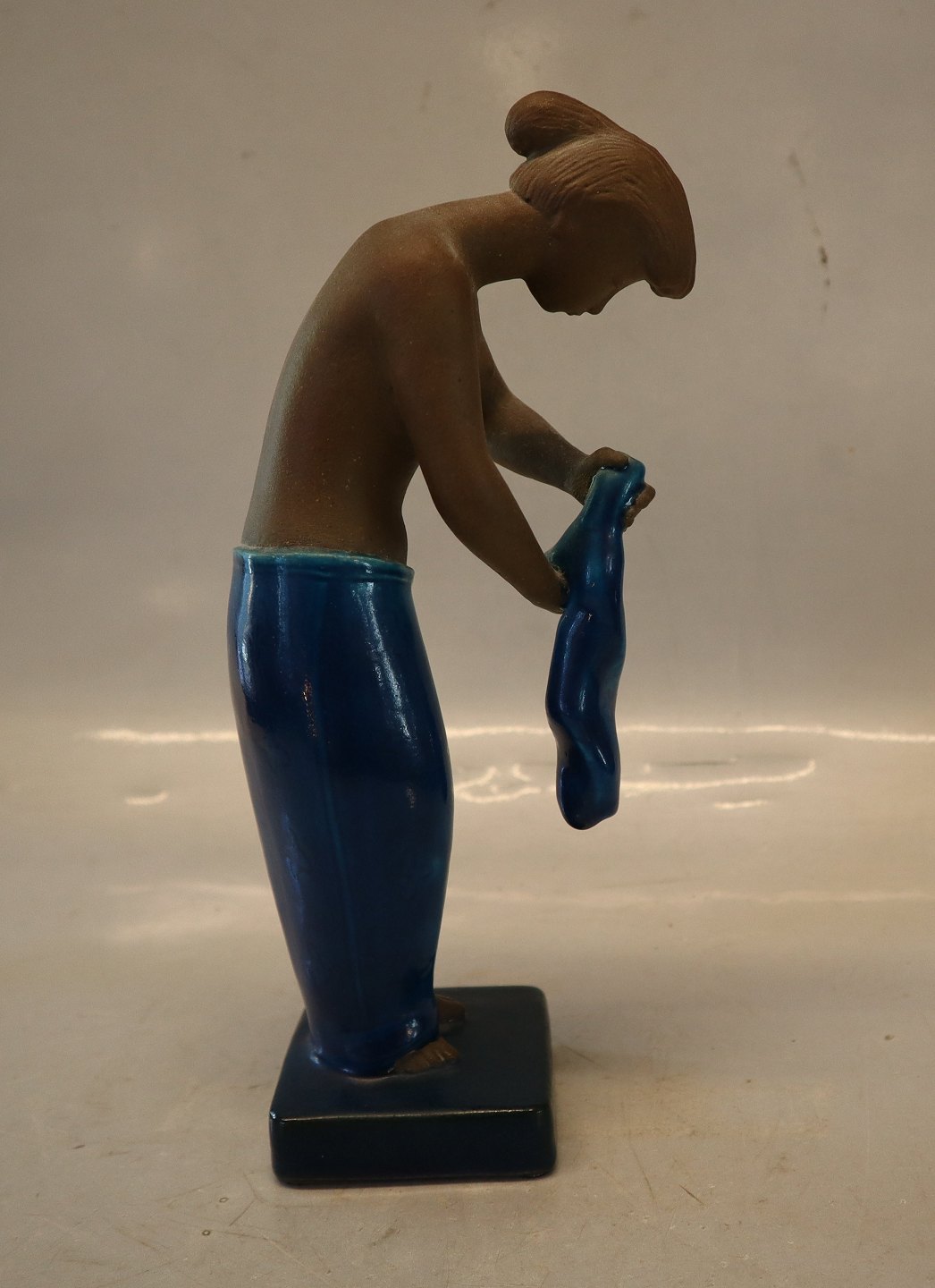 Description: Johannes Hedegaard statue Royal Copenhagen Stoneware. 21424 RC "Martha" Woman with clothes 26 cm, JH, December 1956 In nice and mint condition Turquoise glaze and unglazed terracota / Chamotte