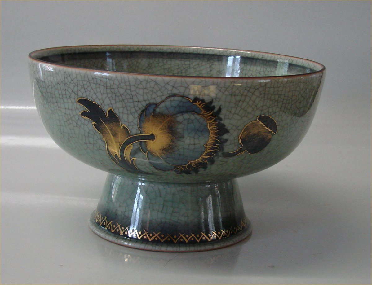 Royal Copenhagen Art Pottery 7-9 RC Bowl with flower 12 x 20 cm. Signed OJ Oluf Jensen 1931 (Crackle)
