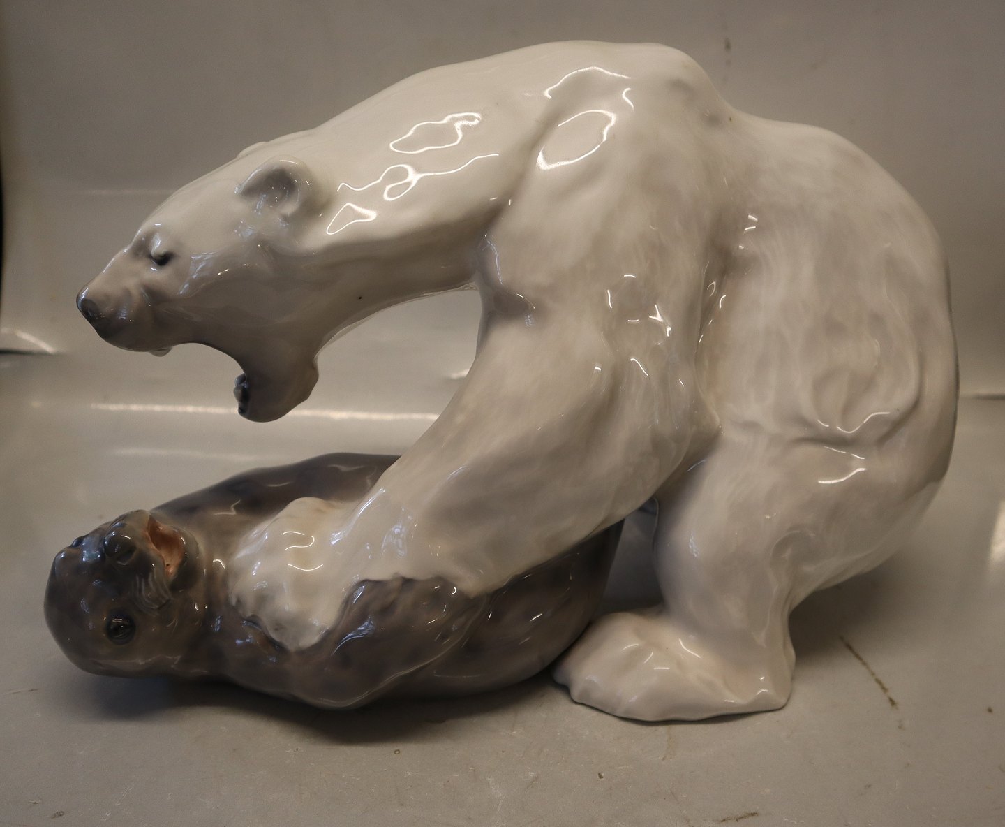 1108 Isbjørn med sæl KK ca 23 x 37 cm 1909 Kongelig Dansk Porceclæn