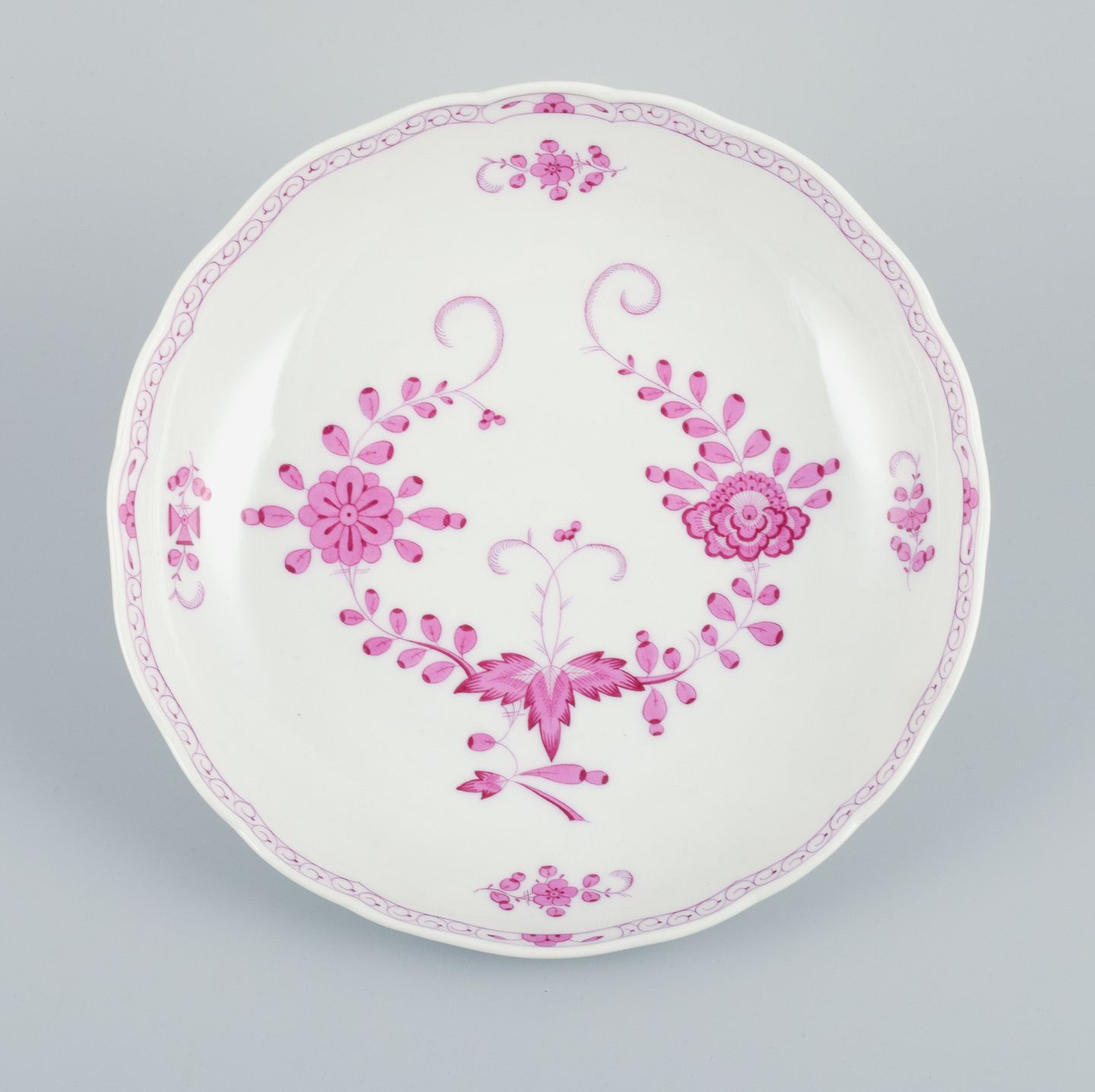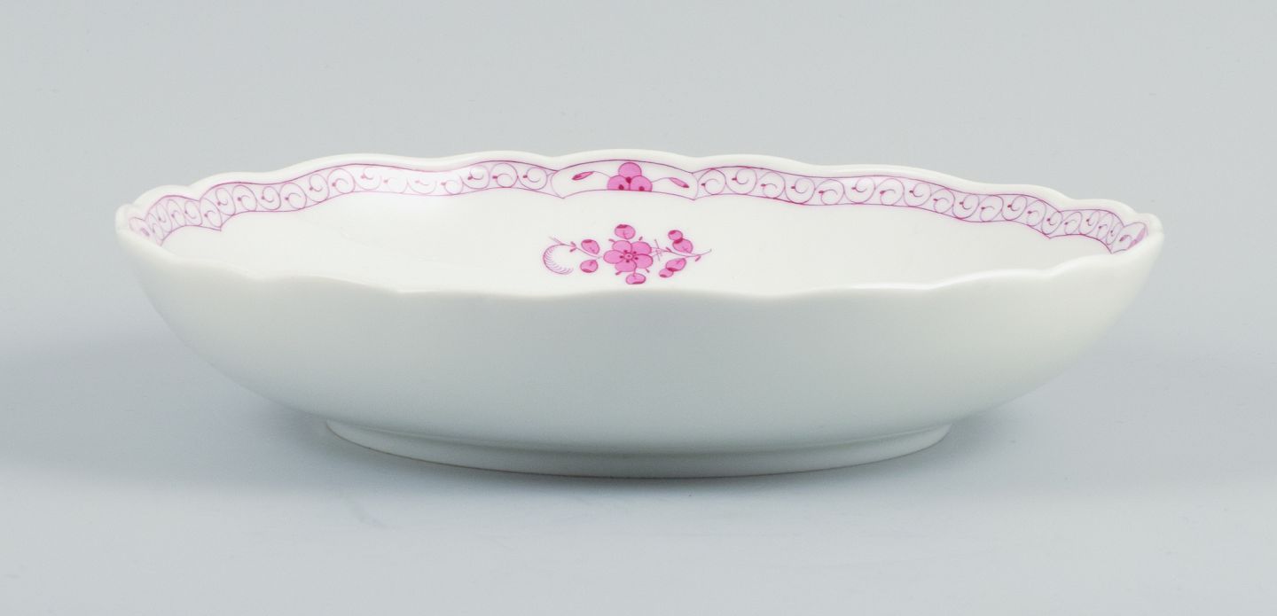 Meissen, Germany, Pink Indian, large round bowl. Hand painted in high quality. Approx. 1900. Marked. Third factory quality. In good condition with no signs of use. Dimensions: D 25.0 x H 5.0 cm.