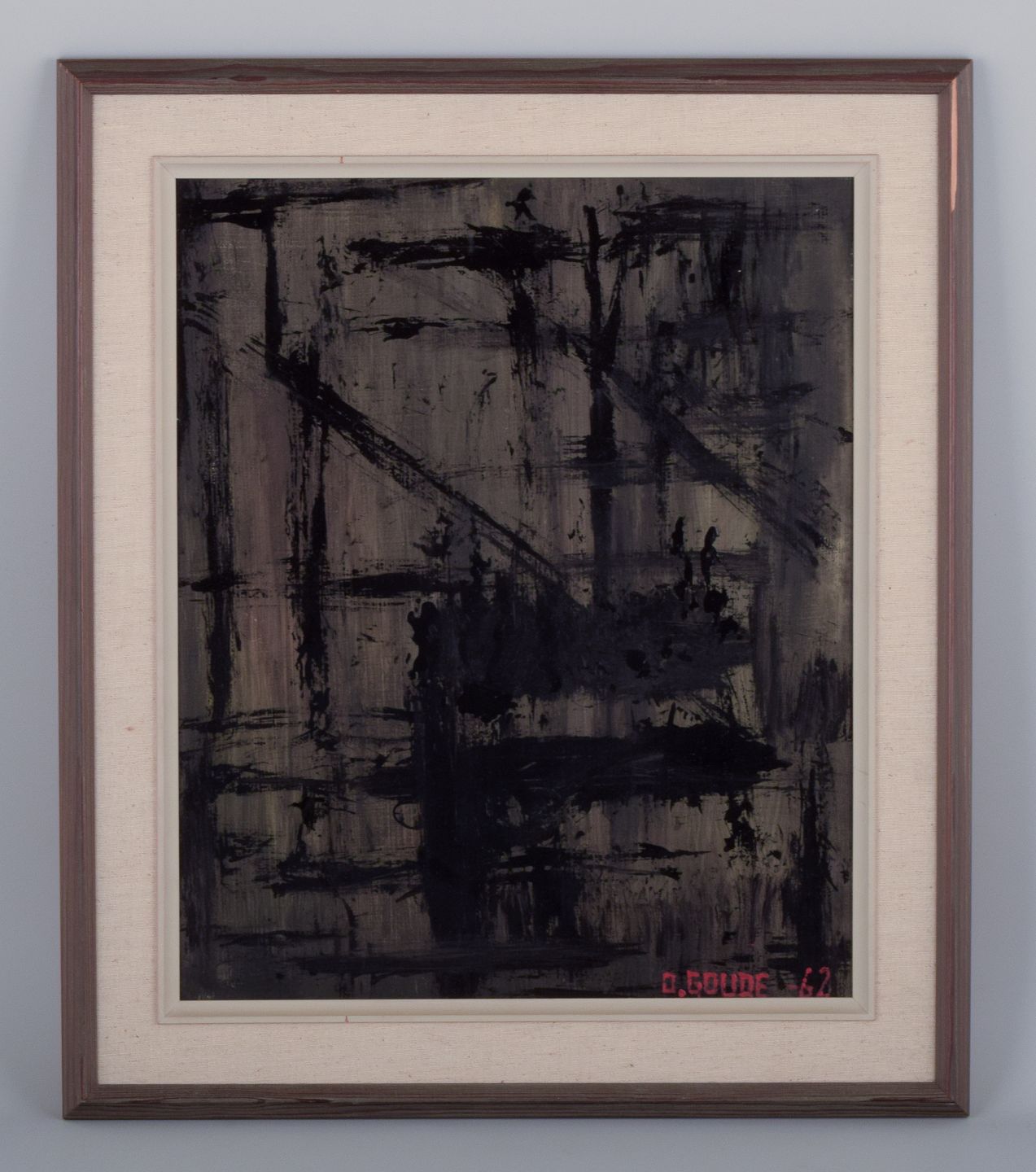 Olle Goude, Swedish artist, oil on board. Abstract composition.