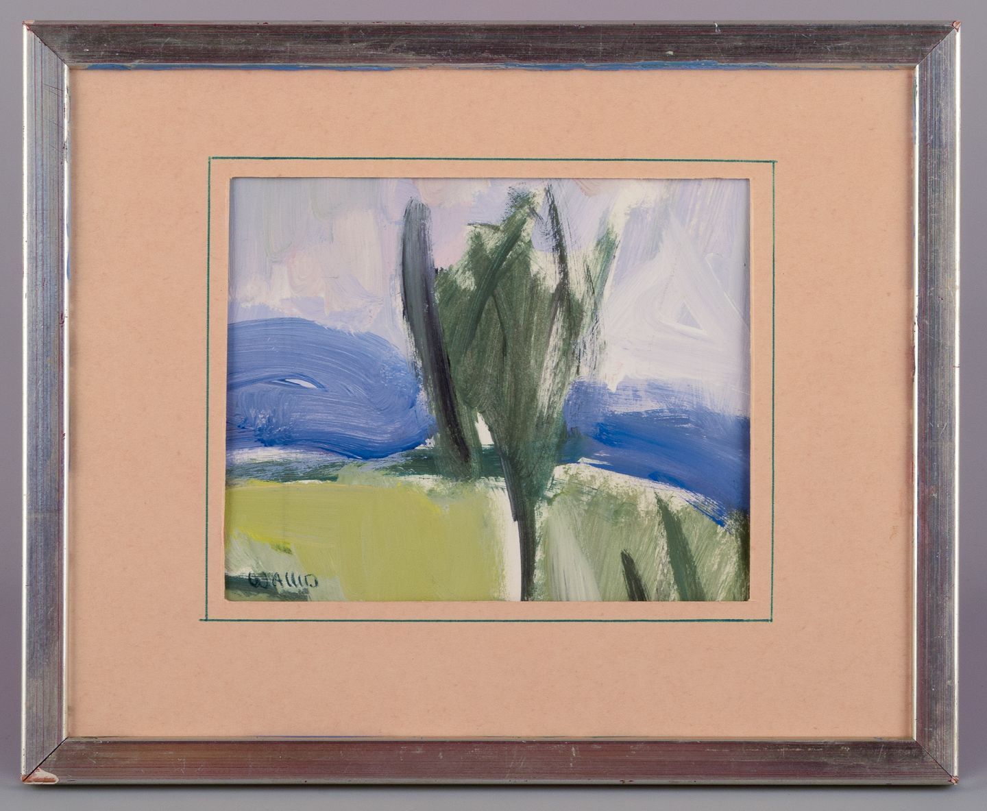 Helmer Wallin (1906-2004), listed Swedish artist. Acrylic on paper. Abstract landscape. 1960s. Signed. In perfect condition. Total dimensions: 26.5 cm x 21.5 cm. Image dimensions: 15.0 cm x 12.0 cm.
