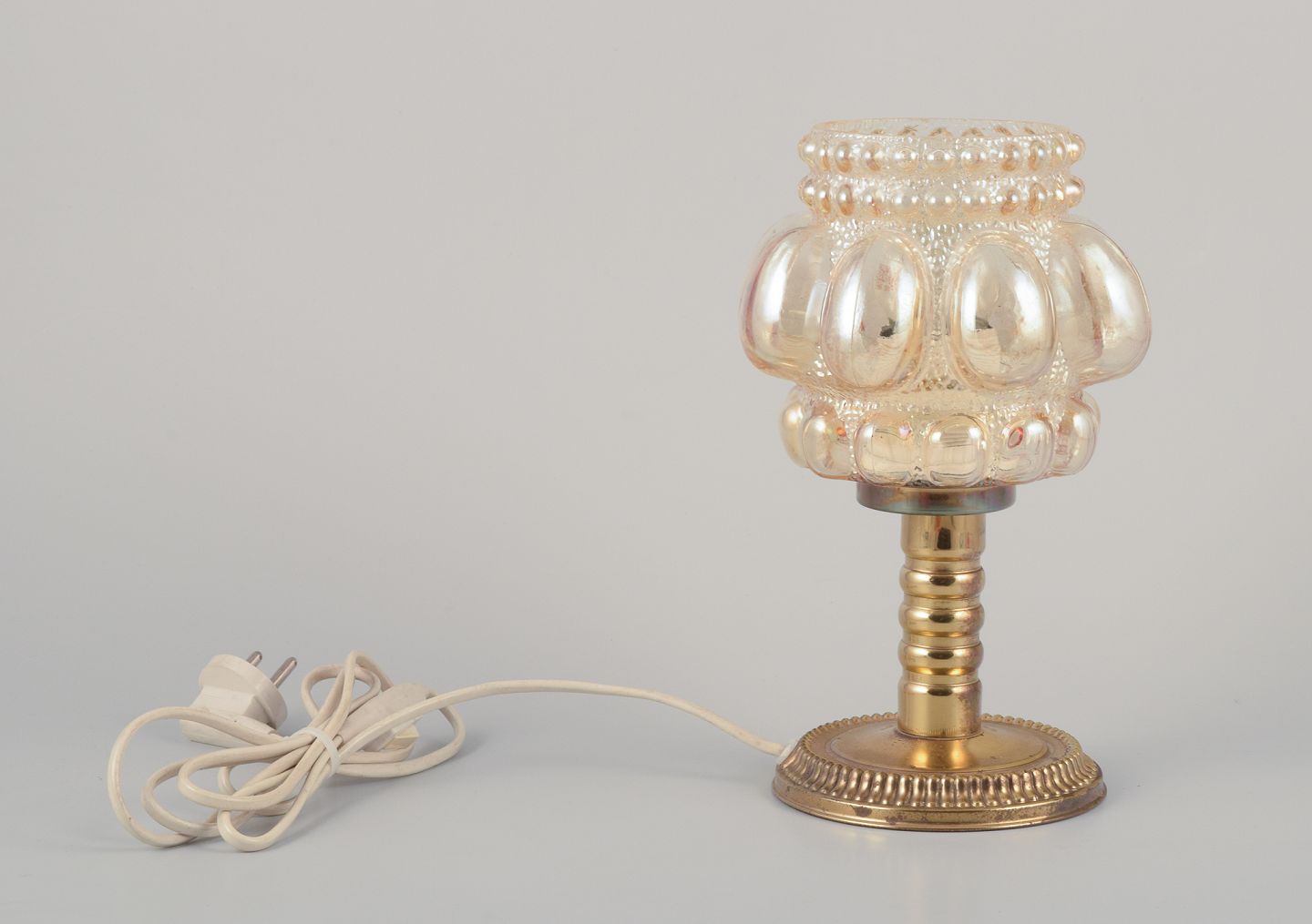 Helena Tynell, Finnish glass artist, for Limburg. Designer table lamp in clear glass and metal. Matte glass with bubbles. From the 1970s. Perfect condition. Dimensions: D 15.0 cm x H 24.0 cm.