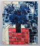 Flowers in a vase. Abstract style. Blue and red palette.