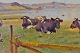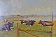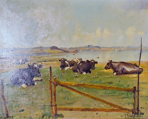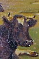 Gunnar Bundgaard (f. Aalborg 1920, d. 2005) : Køer på marken. Signeret, G. Bundgaard. Olie på lærred. 80 x 63. I god stand. Guldrammen er 10 cm. bred.