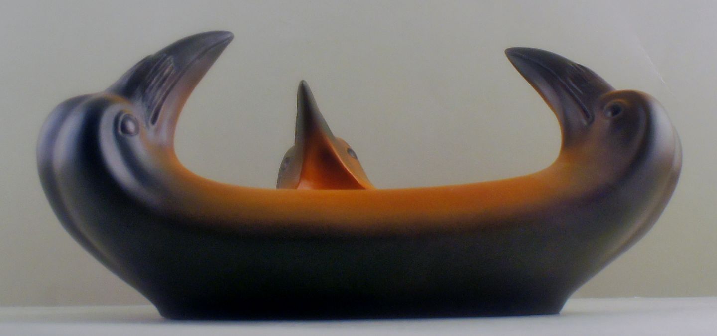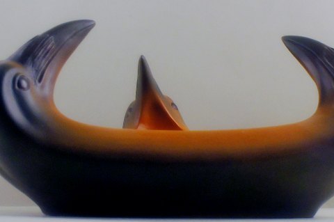 Sjælden Ipsens enke art nouveau keramikskål. Måler 34 x 18 cm. I god stand. Stemplet. Modelnummer 571, designet af N. Nielsen.