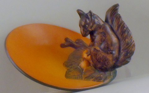 Ipsens enke art nouveau keramikfad med egern. Måler 13 x 18 cm. I god stand. Stemplet. Modelnummer 259.