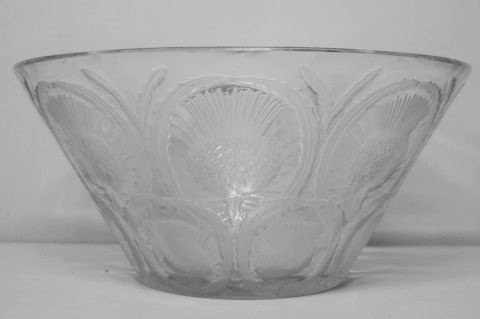 Lalique kunstglas skål med blomster, Art Deco. Signeret: Lalique France. Størrelse: 12 cm. høj. 25 cm. i diameter.