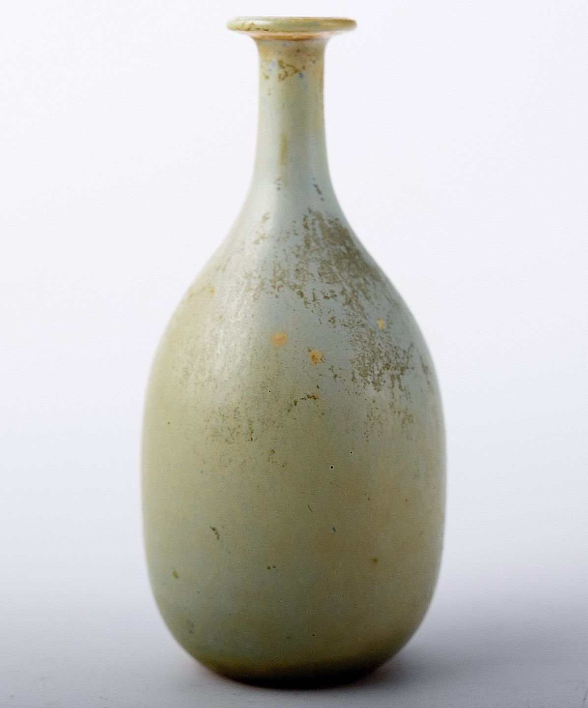 Carl Harry Stålhane, Rörstrand miniature stentøjsvase. Smuk lys glasur. I perfekt stand, 1. sortering. 4.7 cm. høj.