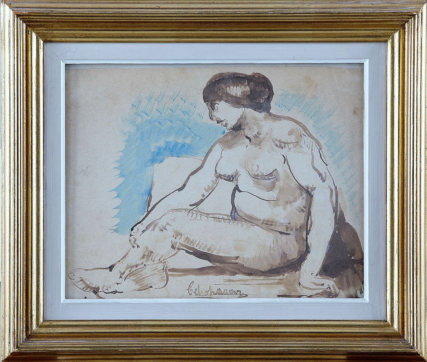 LAGAR, Celso (Spanien, 1891-1966): Siddende model, akvarel, signeret, 22x28 cm. Priseksempel : Et maleri af LAGAR, Celso blev solgt hos Subastas Segre, Madrid, 19 december 2006 for $170,183.