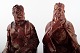 Sjældne Karl Hansen Reistrup for Kähler, ca. 1888. Kriger og konge, bogstøtter i keramik. Hver bogstøtte er stemplet "KHR" og "HAK" på bagsiden. Flot rubinrød lustreglasur. Den røde glasur blev godt modtaget på Verdensudstillingen i Paris i 1889. Meget sjældne skulpturer. 30 cm. høje. I god stand.
