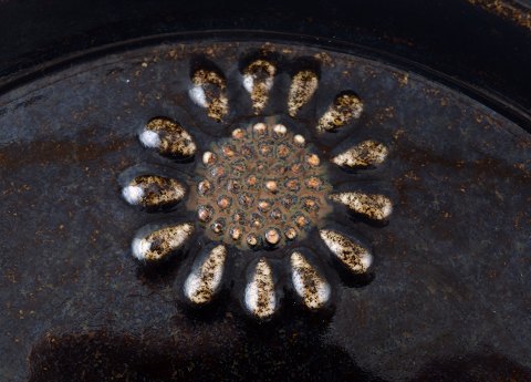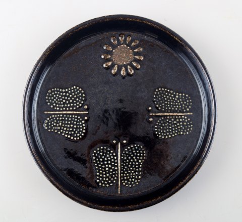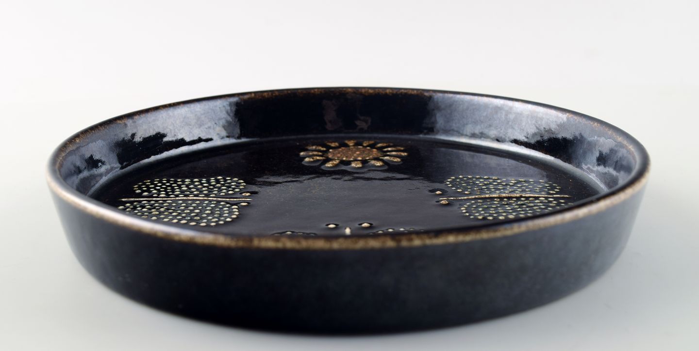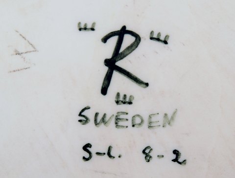 Sylvia Leuchovius for Rörstrand. Stentøjsfad i retro stil. Stemplet "R" og "SL" for Sylvia Leuchovius. Måler 19 cm.