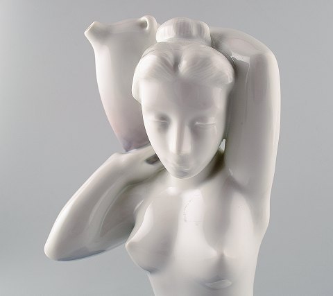 Royal Copenhagen stor porcelænsfigur. Halvnøgen kvinde bærende en vandkrukke. Af Johannes Hedegaard. Perfekt stand, 2. sortering. Nummer 4359. Måler: 32,5 cm.