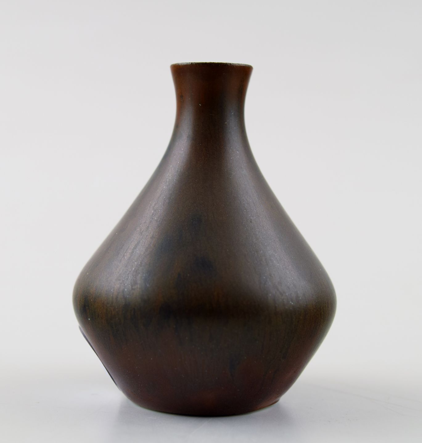 Carl Harry Stålhane, Rörstrand miniature stentøjsvase. Smuk glasur. I perfekt stand, 1. sortering. Mål 4.5 x 5.5 cm.