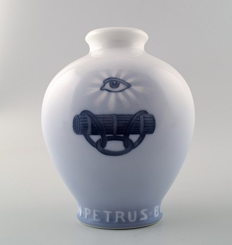 Royal Copenhagen erindringsvase "Petrus Beyer". Måler 13,5 cm. c 13,5 cm. 1. sortering, i perfekt stand.