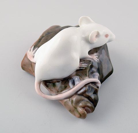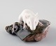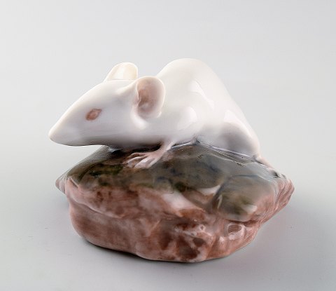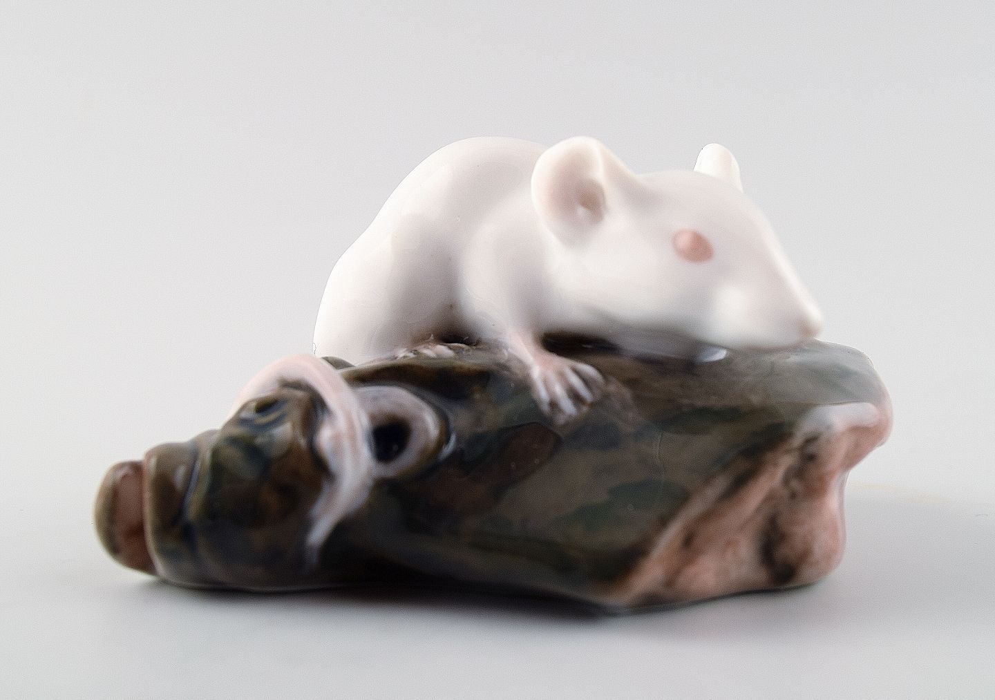 Sjælden Royal Copenhagen Art Nouveau figur, mus på fiskehoved, nummer 513. Måler 8 cm. x 4,5 cm. I perfekt stand, 1. sortering.