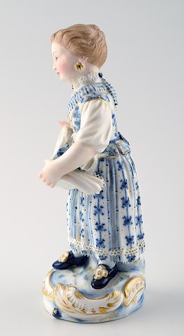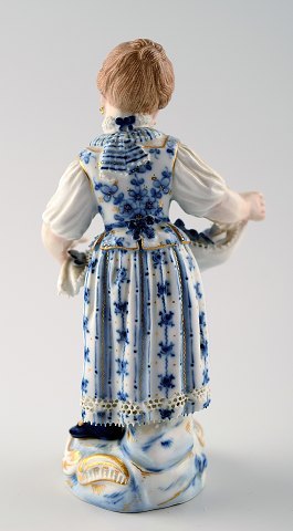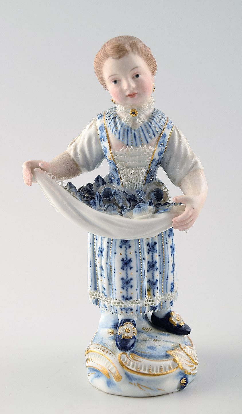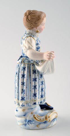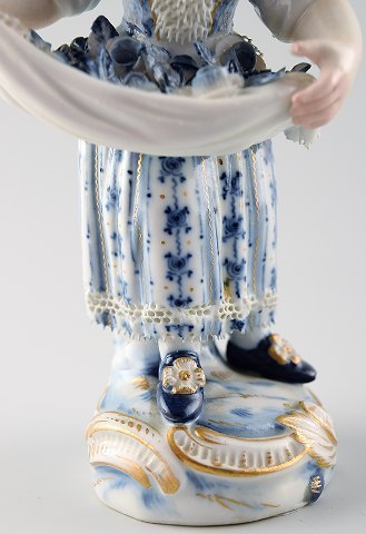 Antik porcelænsfigur, Meissen, pige med blomster, sent 1800-tallet. Overglasur. I god stand. Ingen skår. Måler 12 cm.