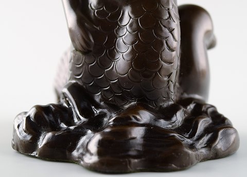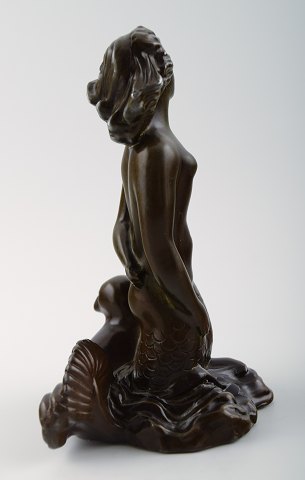Figur af siddende havfrue, designet af Just Andersen. Figuren er udformet i discometal og signeret 'Just A'. Nummer 1930. Højde: 13,5 cm. I god stand, lidt brugspræg.