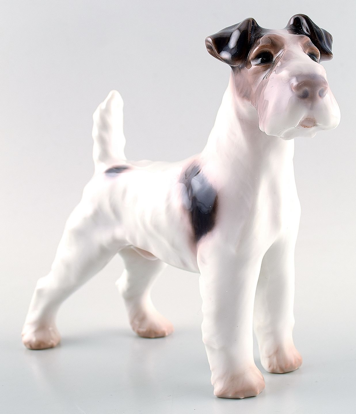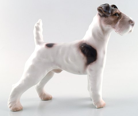 Bing & Grøndahl hund B&G, nr. 1998, Ruhåret foxterrier. Design Dahl Jensen, DJ Måler 15 x 17 cm. I perfekt stand. 1. sortering.