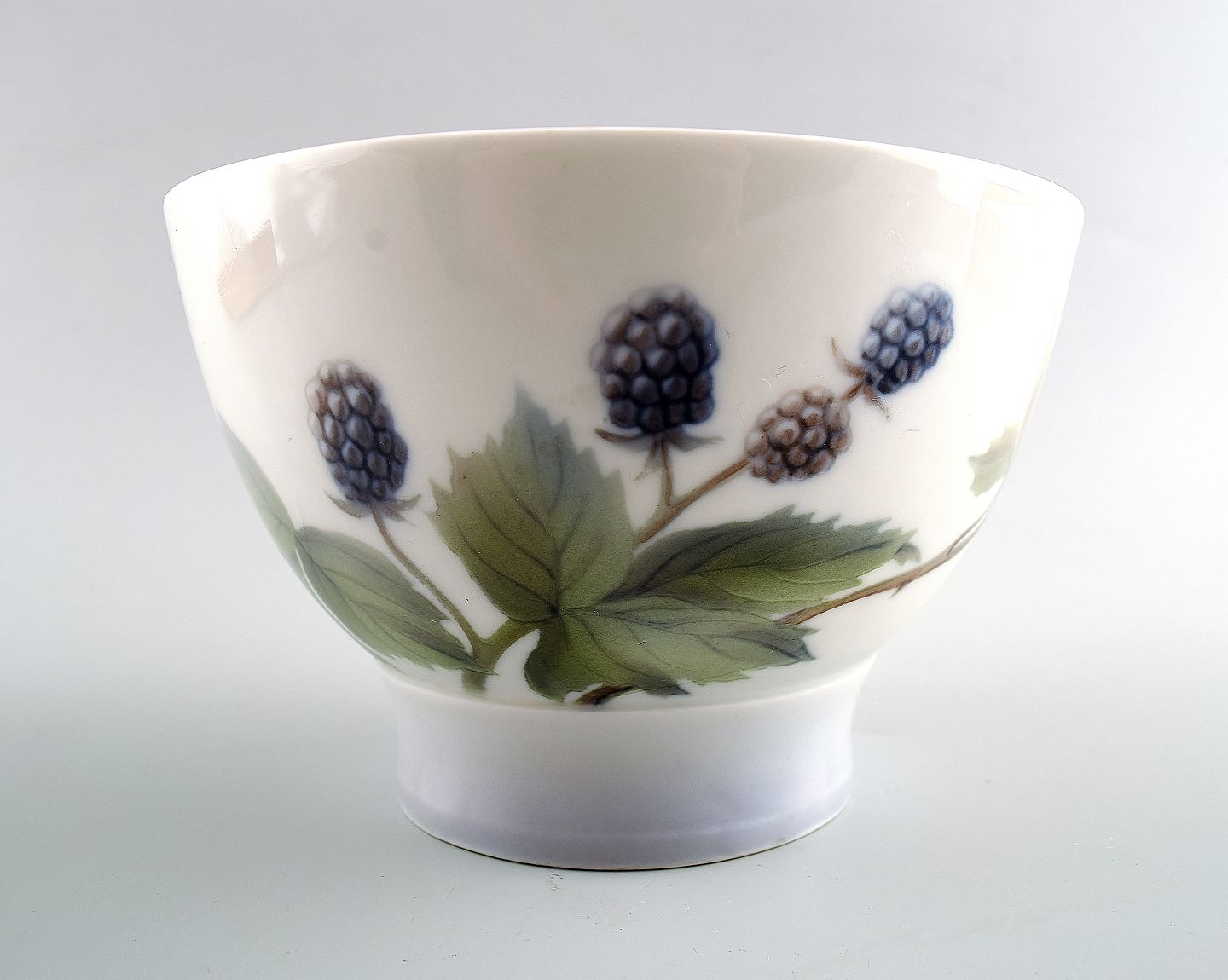 Sjælden B&G, Bing & Grøndahl, art nouveau skål dekoreret med brombærgrene. Måler 13,5 x 9 cm. I god stand, dog med hårrevne. 1. sortering.
