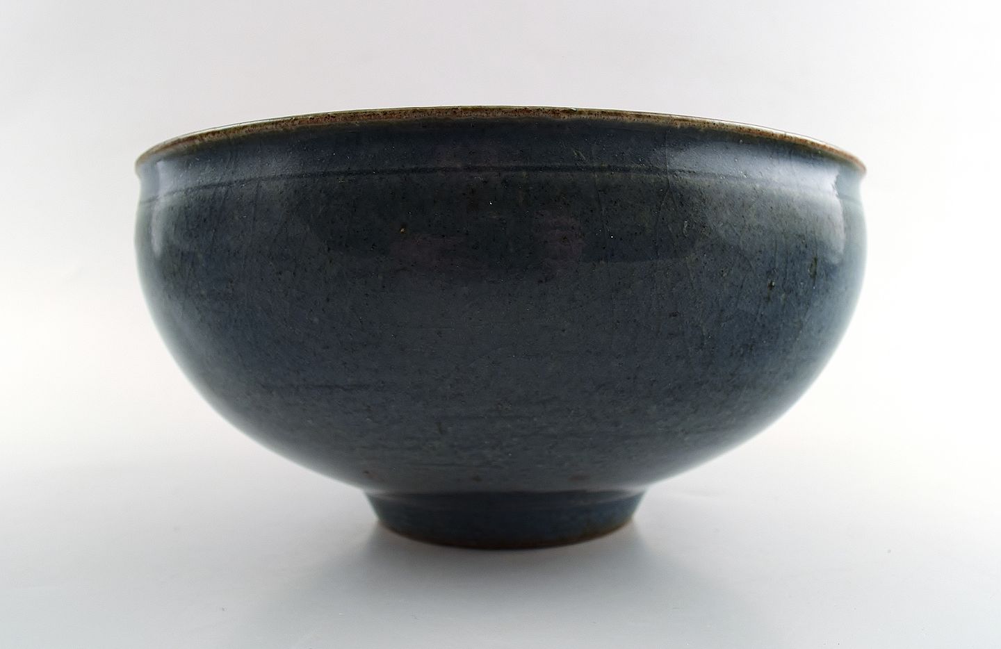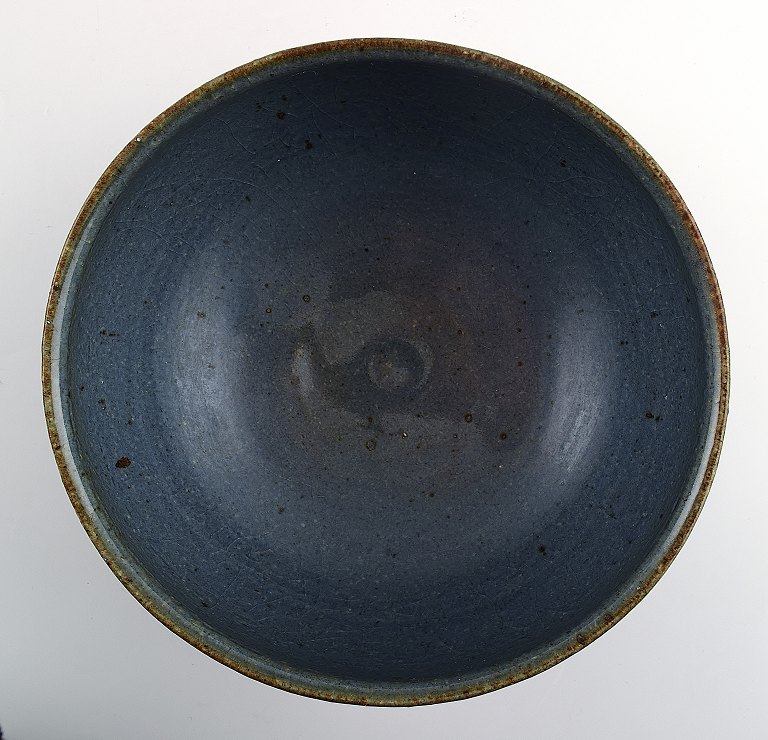B&G, Bing & Grøndahl, Valdemar Pedersen stentøjsskål. Blå glasur. 1.sortering. Perfekt stand. Måler : 18.5 cm. x 9 cm.