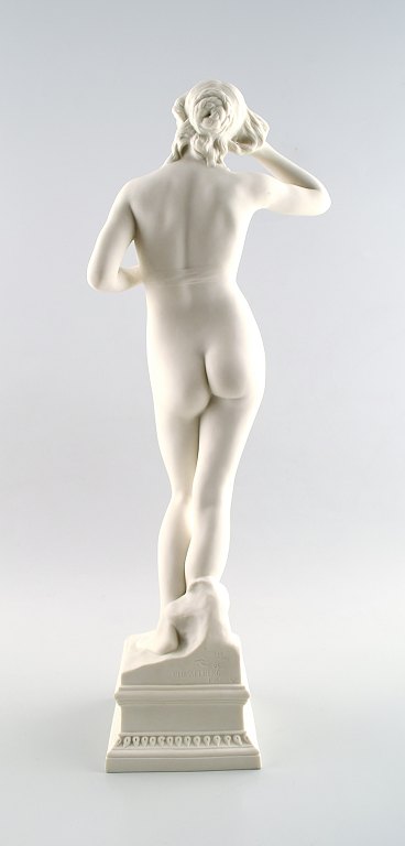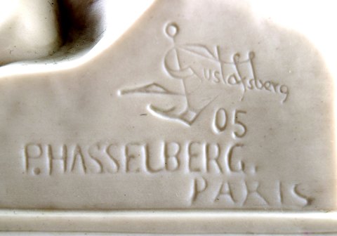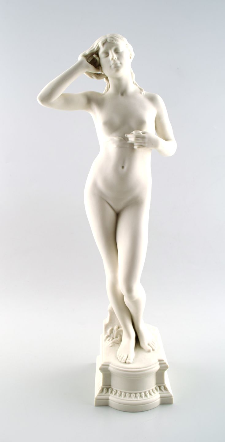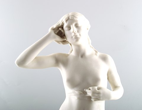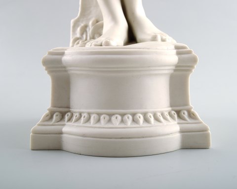 Skulptur i biscuit på sokkel, "Snöklockan" Gustavsberg, stemplet P. Hasselberg, Paris 1905. Måler 48 cm. I perfekt stand.