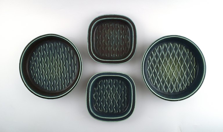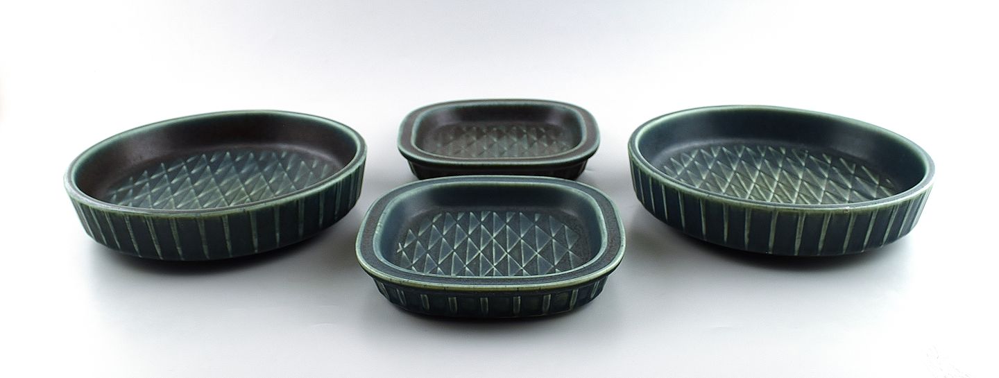 2 par GUNNAR NYLUND for Rörstrand keramikfade. "Eterna" med geometrisk mønster i dekoration . Måler: 20 x 4.5 cm. og 16 x 3 cm. I perfekt stand. Stemplet.