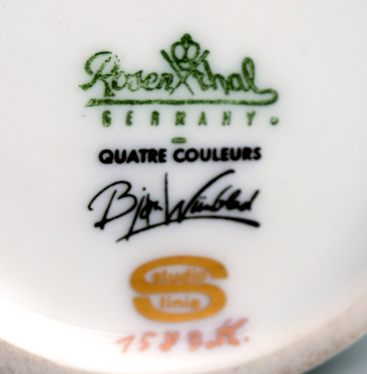 Rosenthal Studioline quatre couleurs, Bjørn Wiinblad par store porcelænsvaser, dekoreret i guld. I perfekt stand. Måler 33 cm. Stemplet.