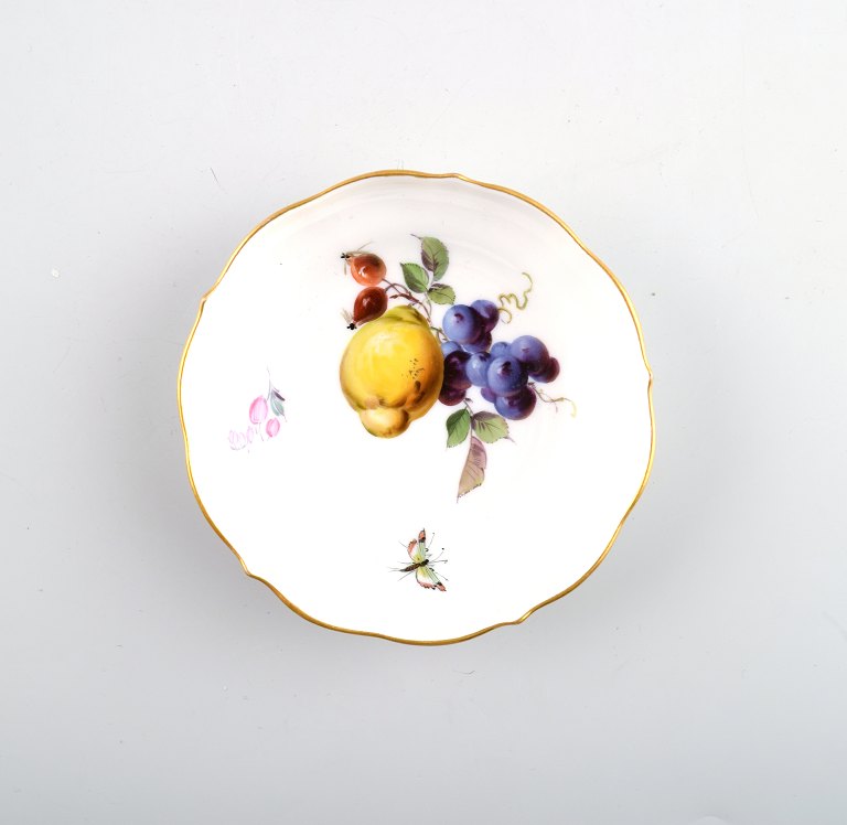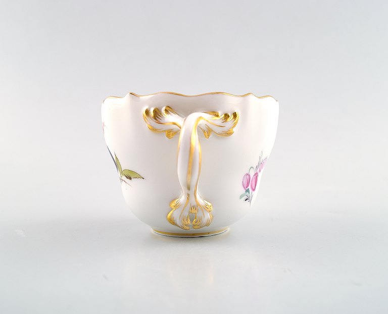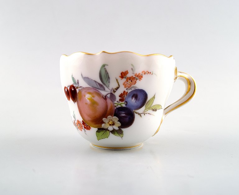 Meissen mokkakop/lille kaffekop dekoreret med blomster og frugter. I perfekt stand, 1. sortering. Måler 6.5 x 5 cm. Underkop 10.5 cm. Stemplet ca. 1930´erne.
