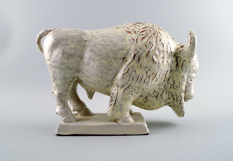 Ovar Nilsson. Bisonokse af lertøj med hvid glasur. Signeret Ovar Nilsson samt mærket Höganäs i bund. Højde 18 cm. Længde 28 cm. I perfekt stand.
