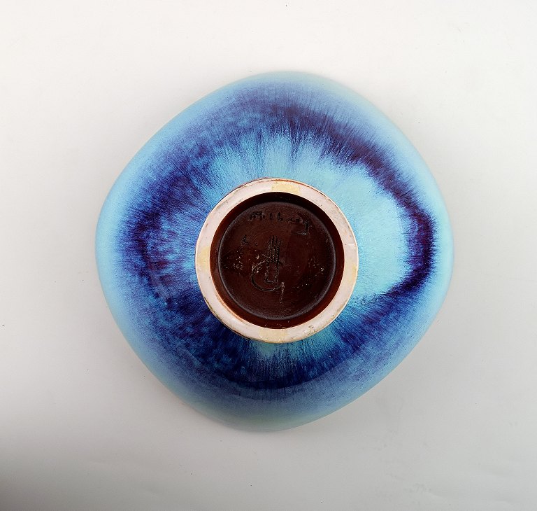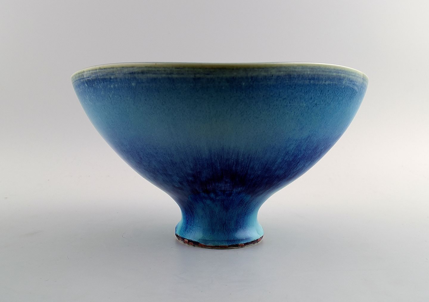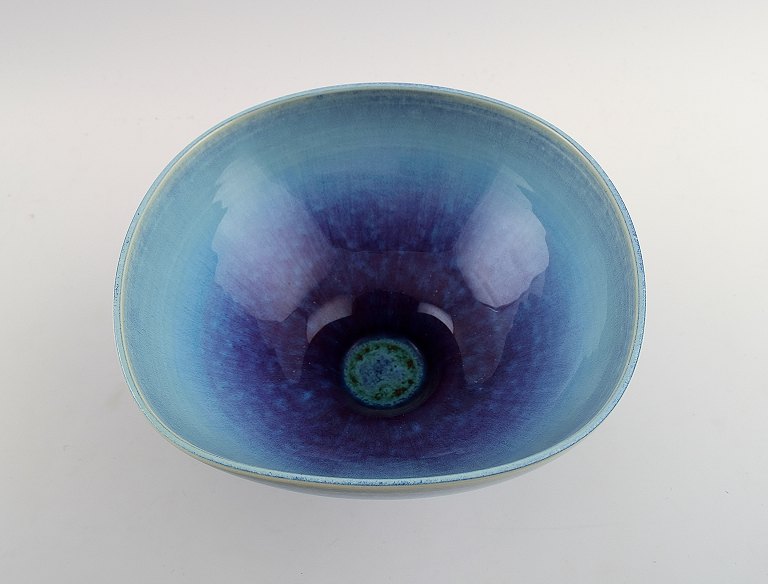 Berndt Friberg Studio stor keramik skål. Moderne svensk design. Unika, håndlavet. Fantastisk glasur i blå/turkise nuancer. Perfekt. 1. sortering. Måler 19 x 11 cm.