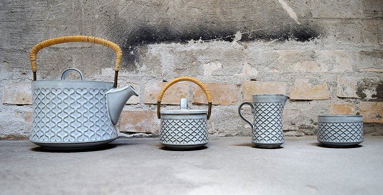 Jens Harald Quistgaard, komplet 12 personers. Bing & Grøndahl B&G Grå Cordial stentøjs te-service.