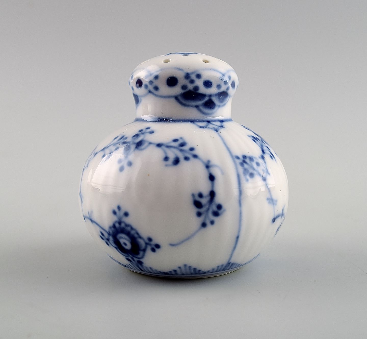 Royal Copenhagen Musselmalet halvblonde saltbøsse. Nummer 1/712. Tidligt stempel. 1. sortering. I perfekt stand. Højde 5,5cm.