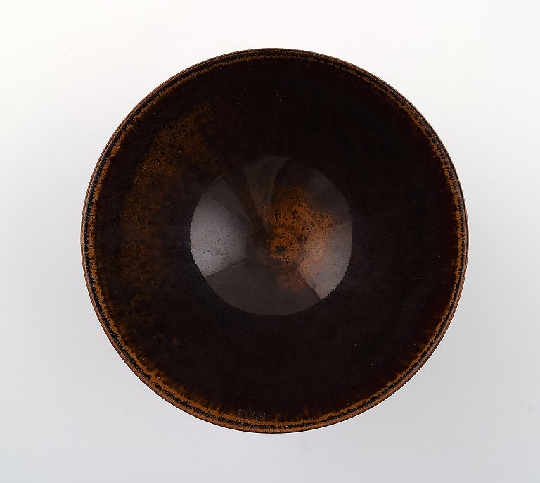 Stig Lindberg (1916-1982), Gustavsberg Studio hand, keramikskål. Glasur i brune nuancer. Måler 11 x 6 cm. I perfekt stand.