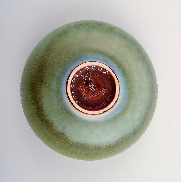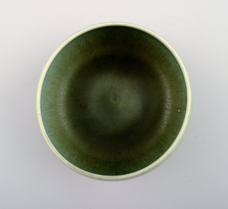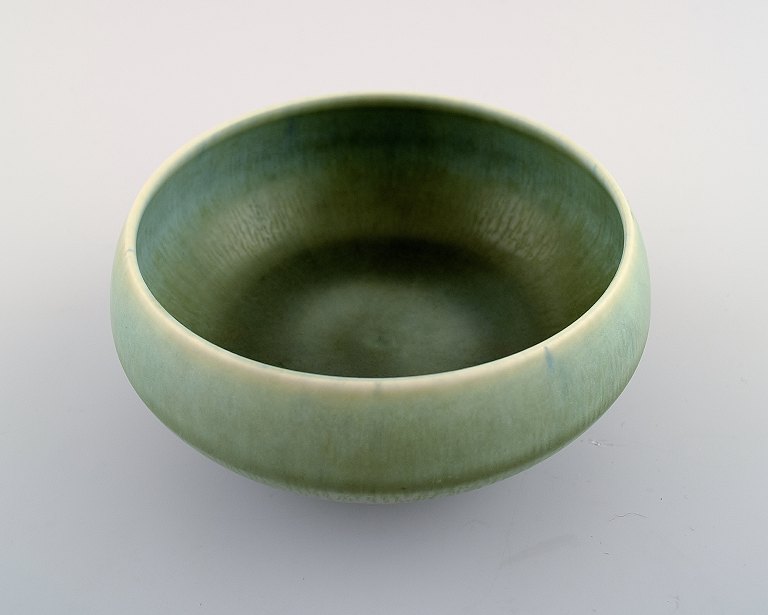 Berndt Friberg (1899-1981), Gustavsberg Studiohand Keramikskål, smuk glasur i lysegrønne nuancer. Måler: 12 x 7 cm. I perfekt stand.