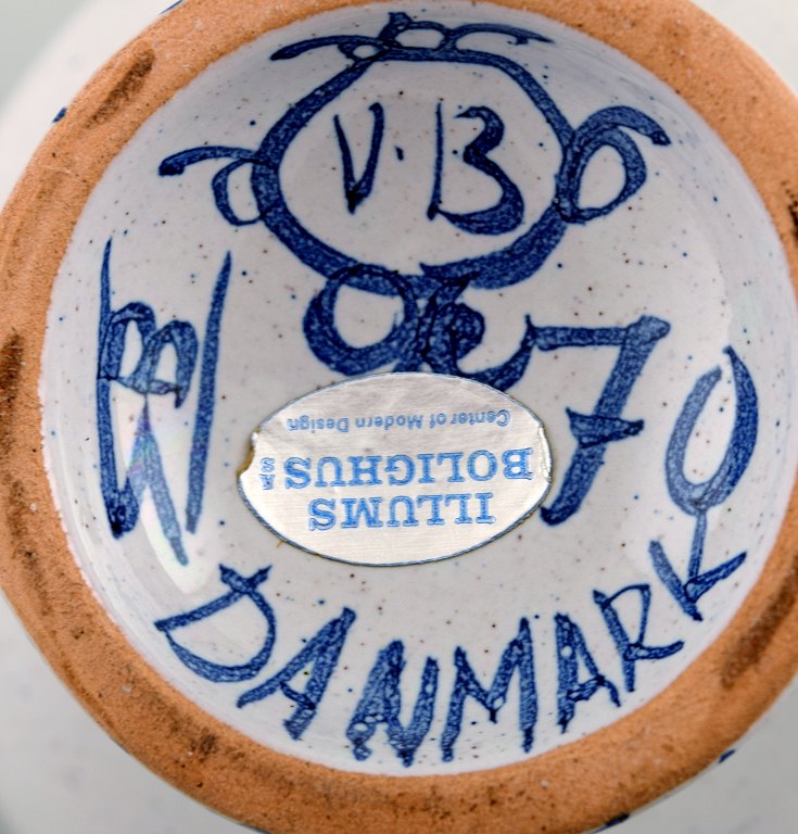 Bjørn Wiinblad unik keramikvase. Det blå hus. Modelnummer V 13. Måler: 10 cm. x 10 cm. Signeret, 1970. I perfekt stand.