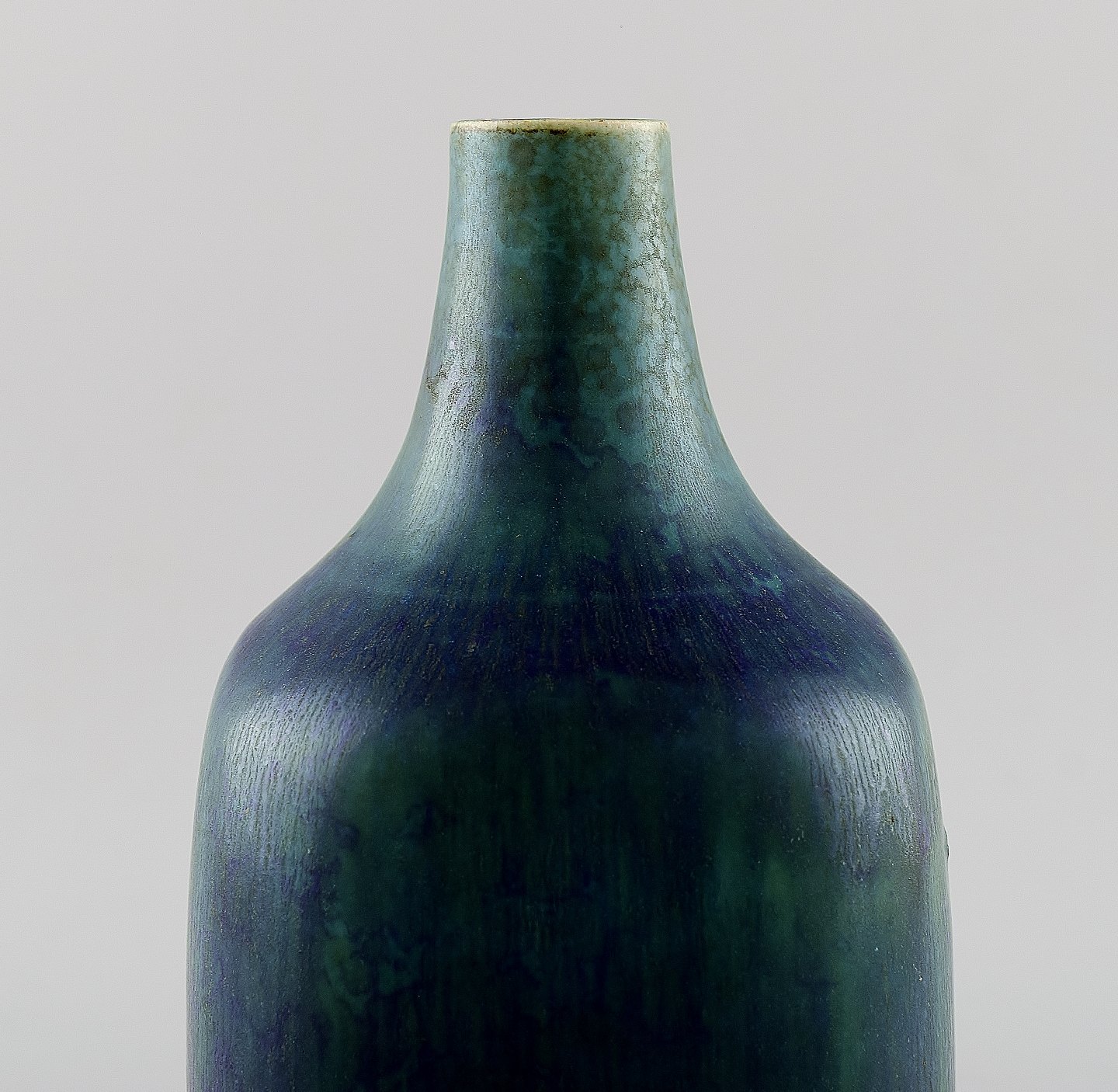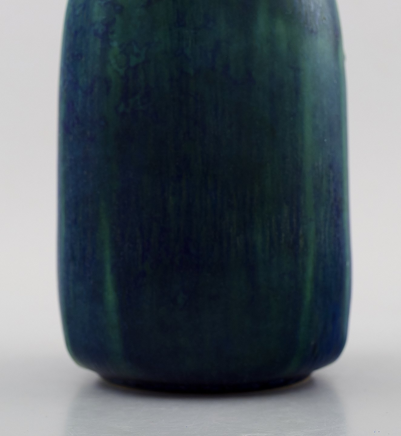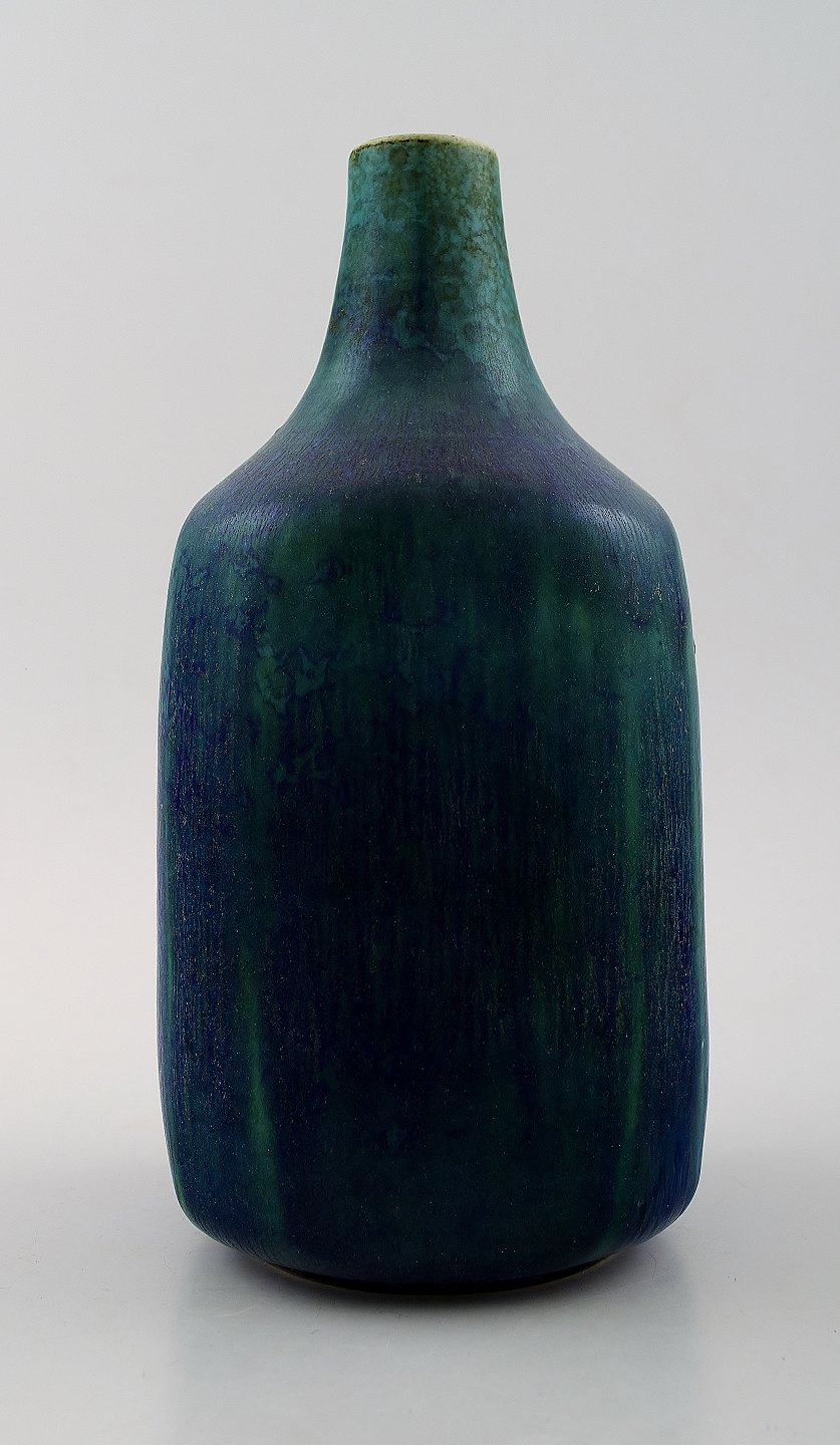 Eva Stæhr Nielsen for Saxbo, keramik vase i moderne design. Smuk glasur i blå og grønne toner. Stemplet. Modelnummer 278. Størrelse: 19 cm. I perfekt stand.