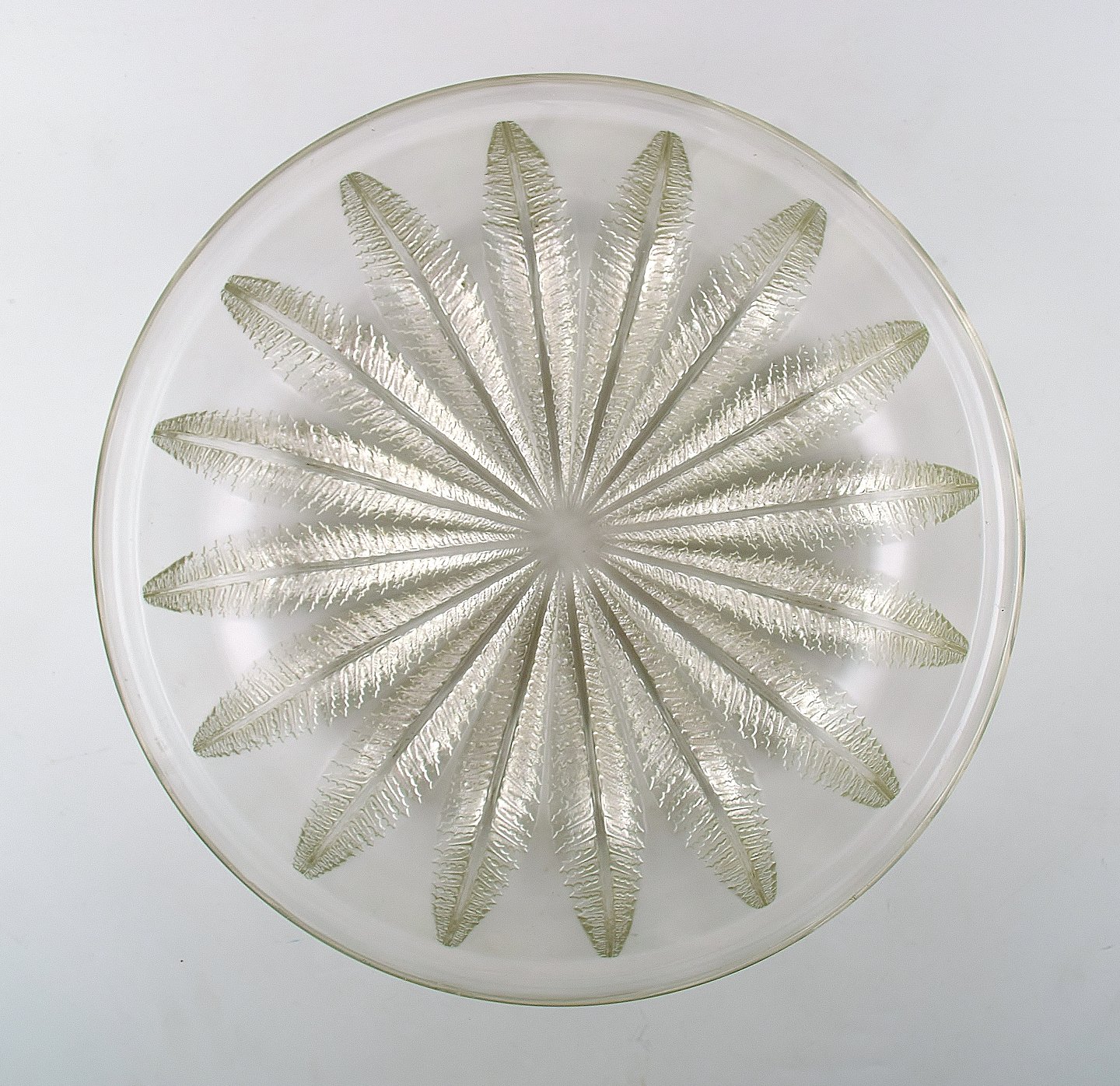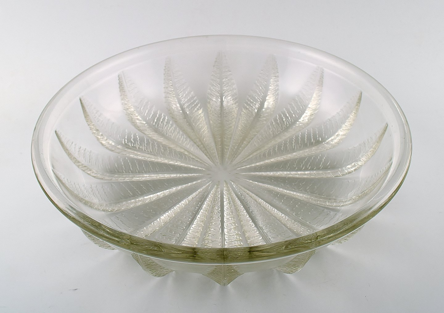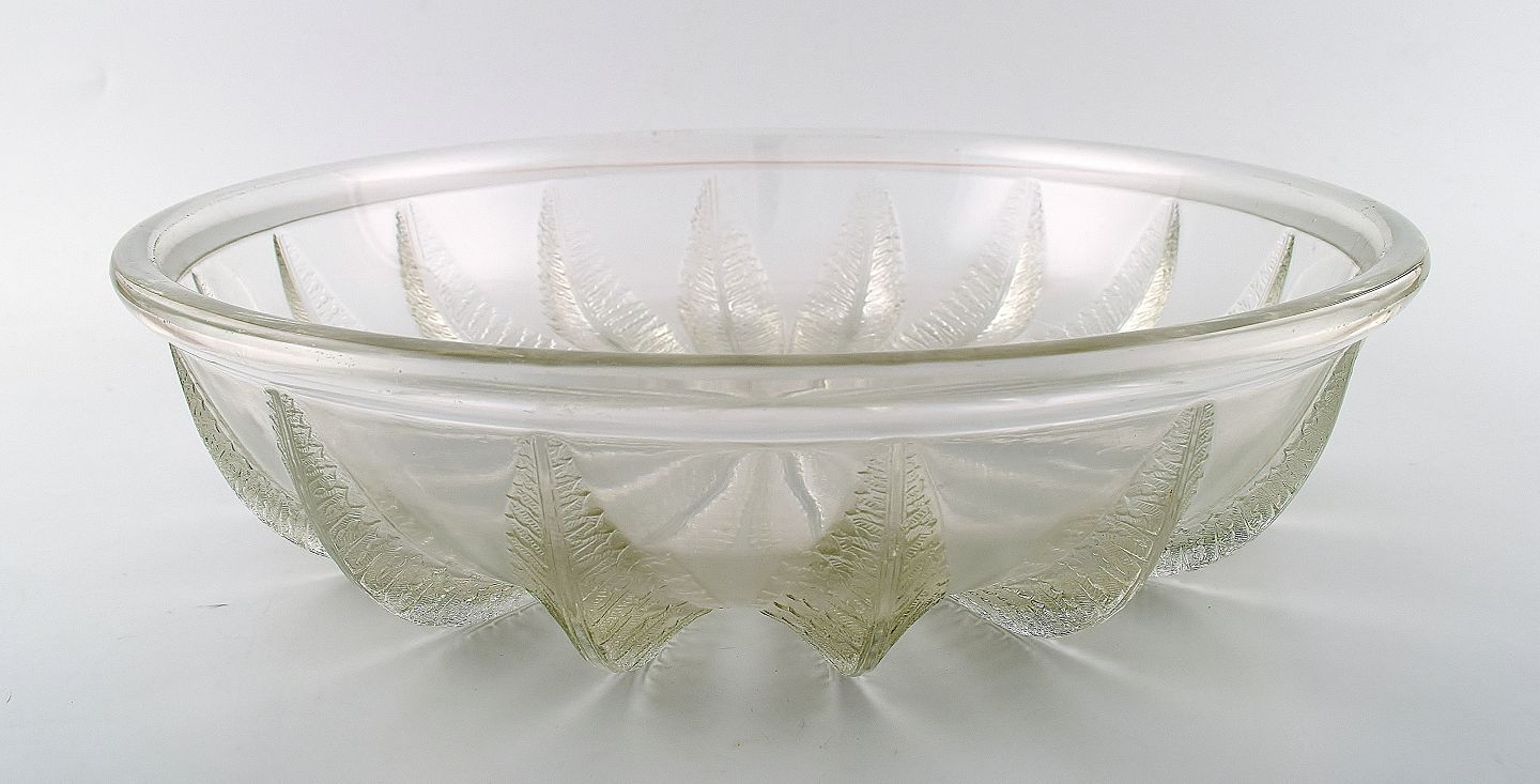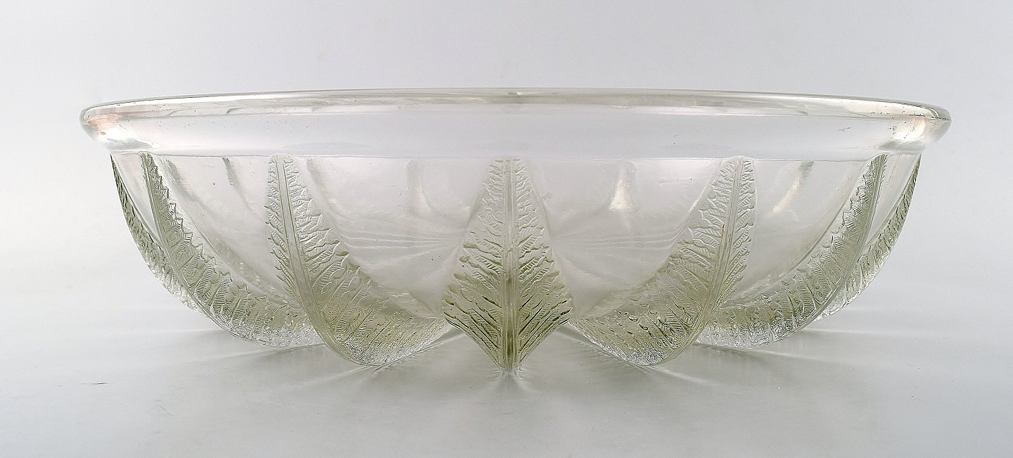 Stor Art deco Lalique kunstglasskål. Signeret: Lalique France. Størrelse: 9 cm. høj. 35 cm. i diameter. I perfekt stand.