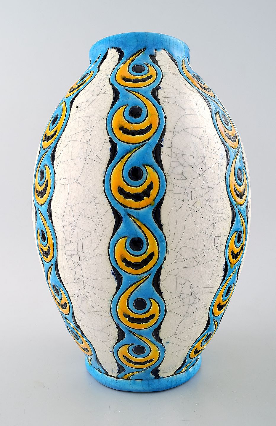 Boch Freres Keramis, Belgien stor art deco keramikvase. 1930/40´erne. I perfekt stand. Stemplet. Måler : 29 cm. x 19 cm.