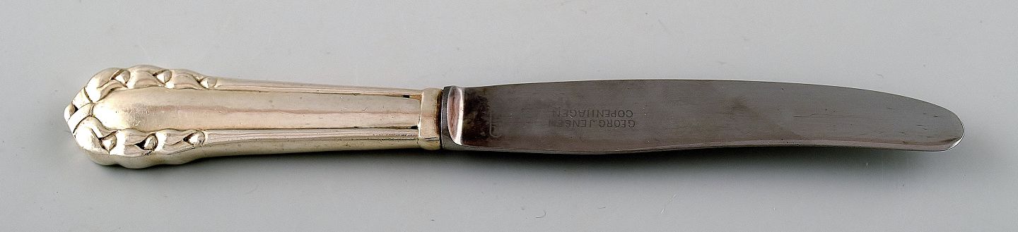 2 stk. Georg Jensen Liljekonval sølv frokostknive. Måler 20,5 cm. I god stand. Tidligt stempel. Tegnet af Georg Jensen i 1913.
