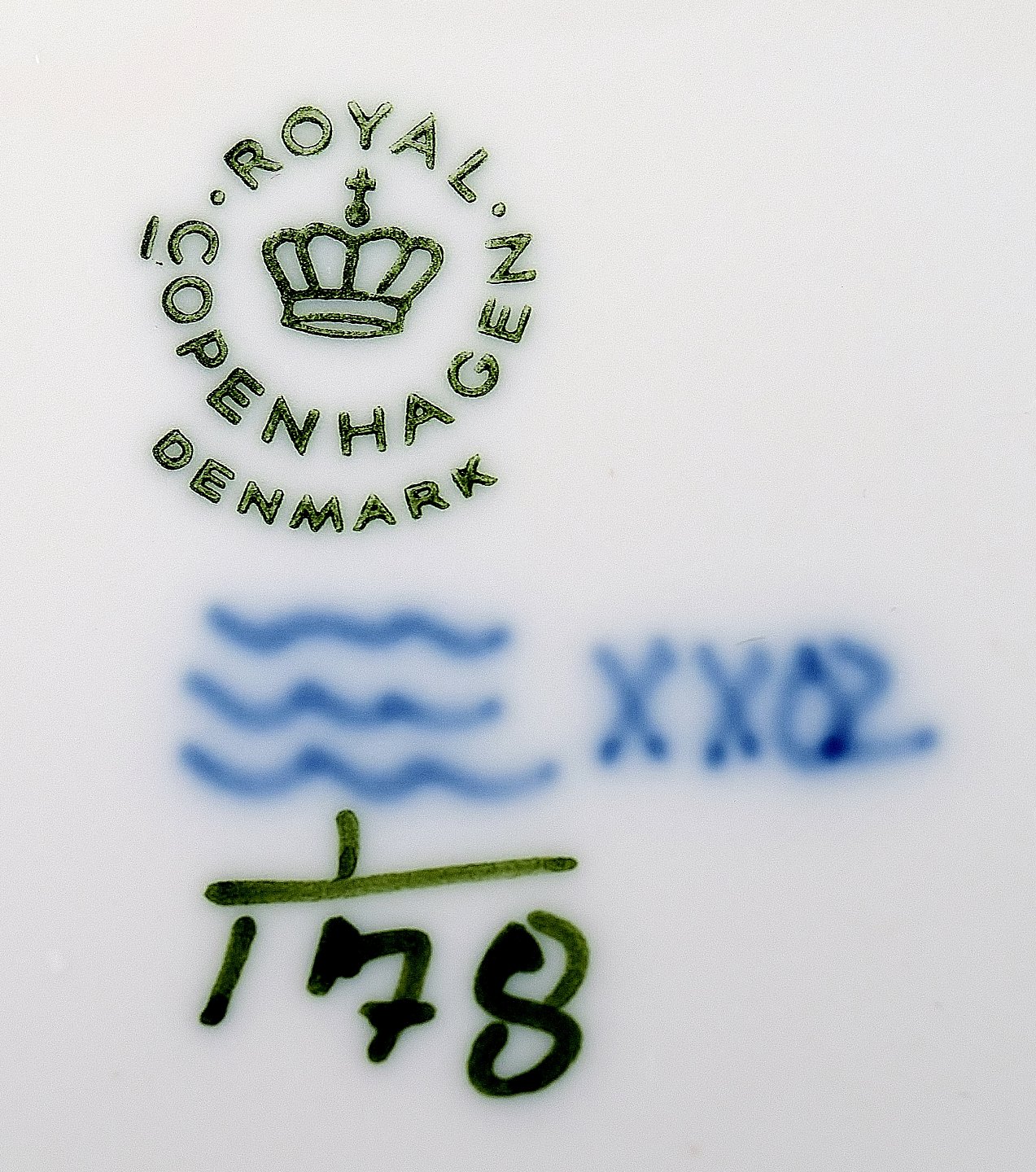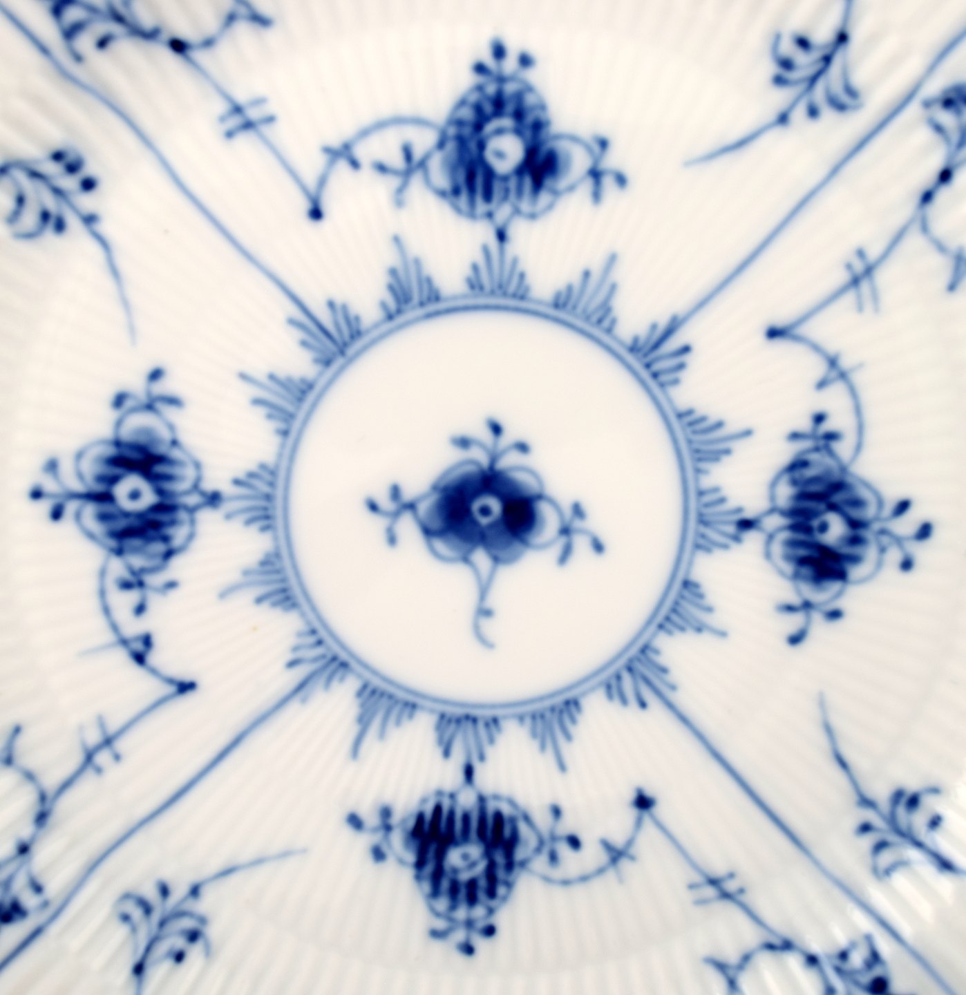 Royal Copenhagen. Kongelig porcelæn musselmalet riflet, 6 tallerkener. Nr. 1/178 eller 621. Diameter. 21 cm. 1. sortering. I perfekt stand.