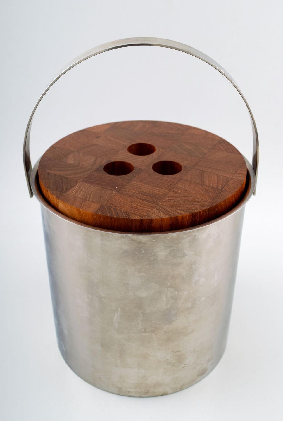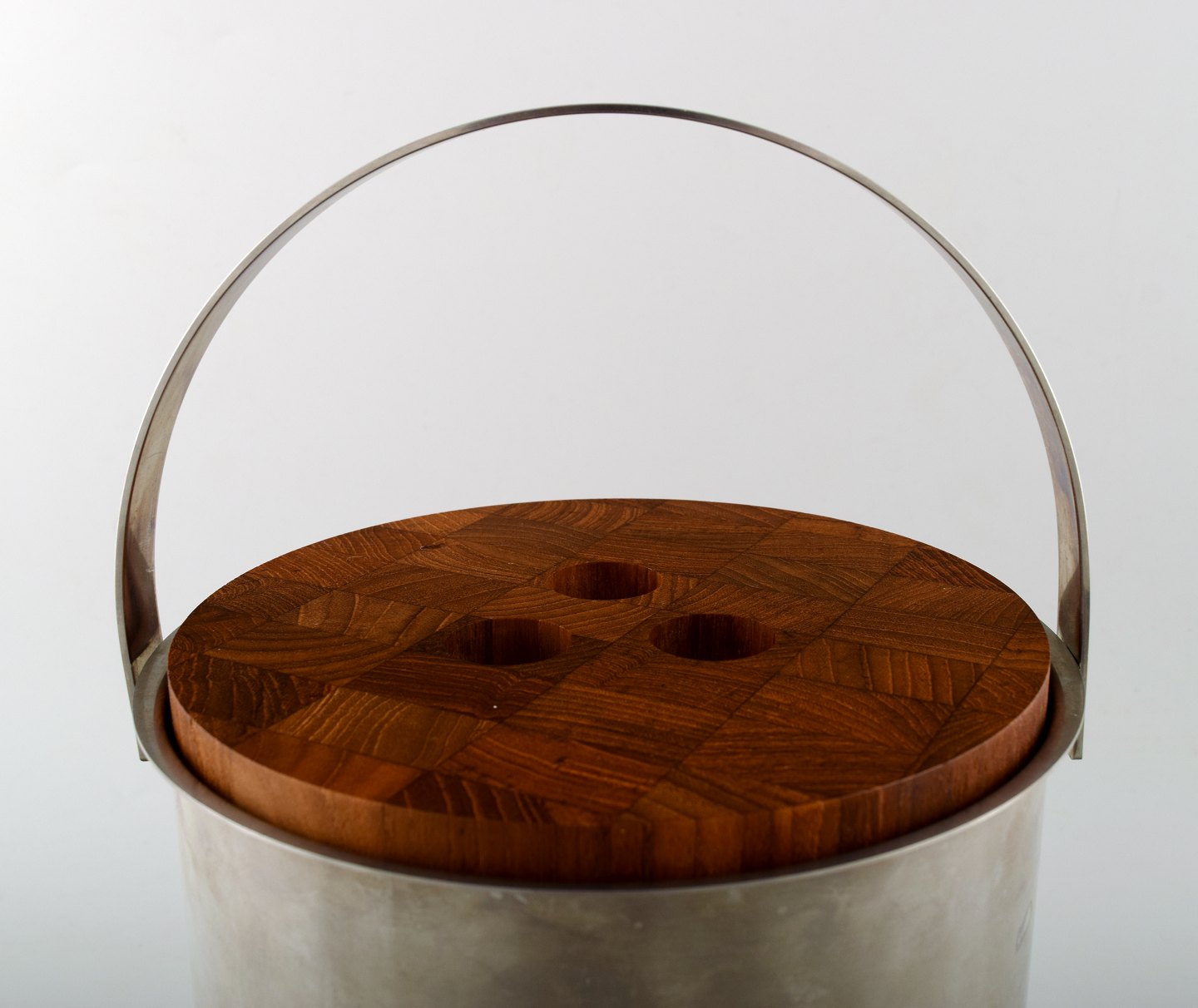 Arne Jacobsen for Stelton isspand i rustfrit stål. Låg i teak. Plastindsats. Måler 19 cm. x 19 cm. I perfekt stand. Stemplet.
