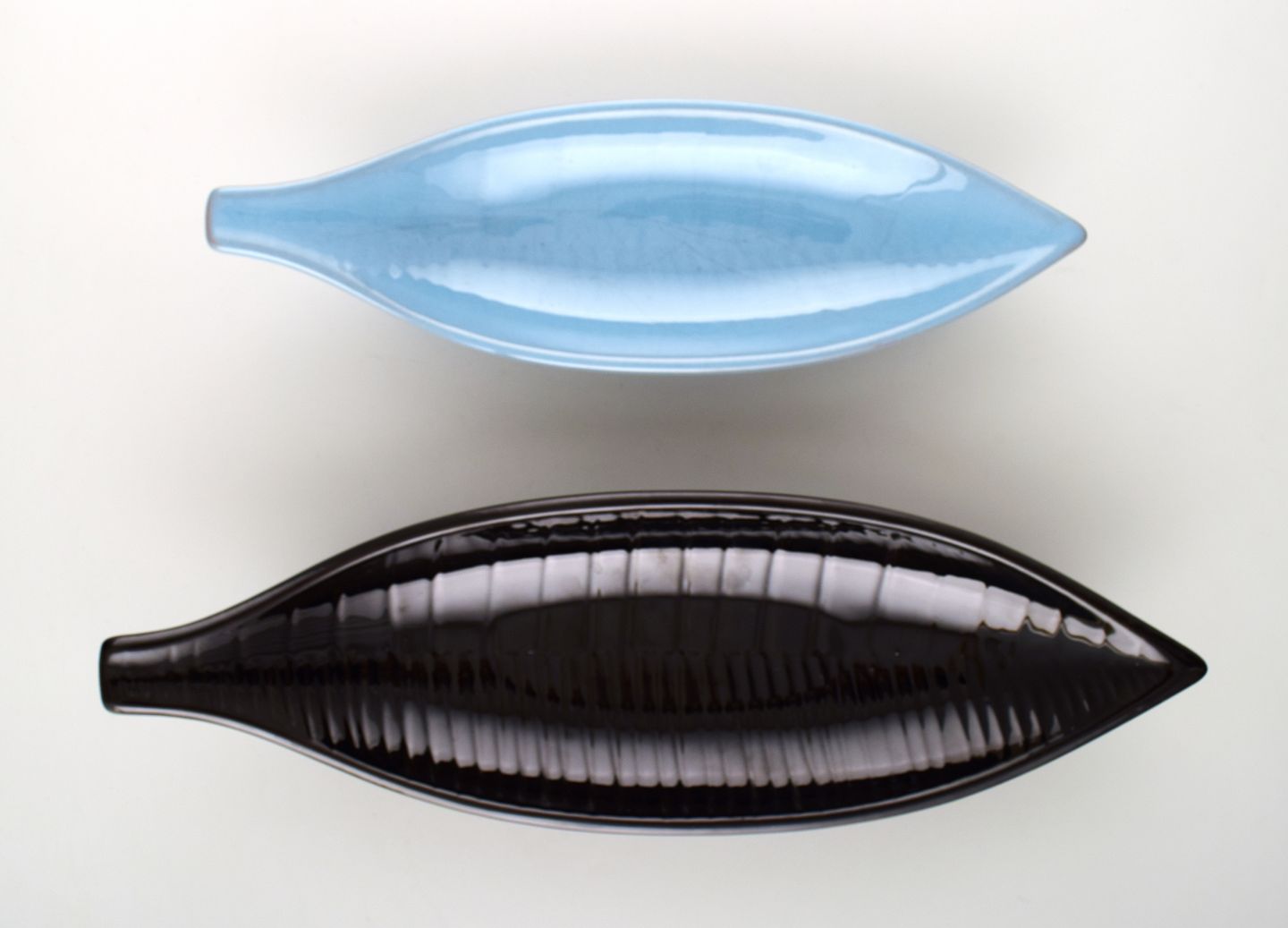 2 store keramikfade, svensk design, 60´erne. Måler : Største 35 cm. x 11 cm. Flot glasur !! Utydeligt stemplet. I perfekt stand.