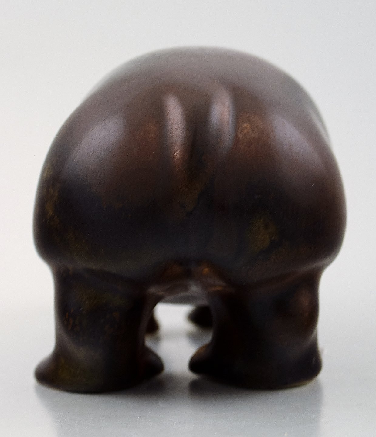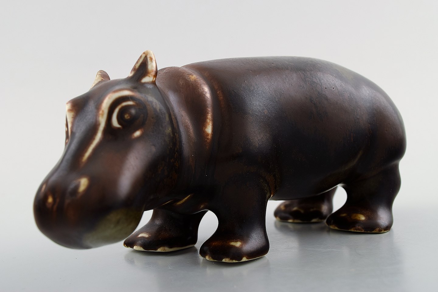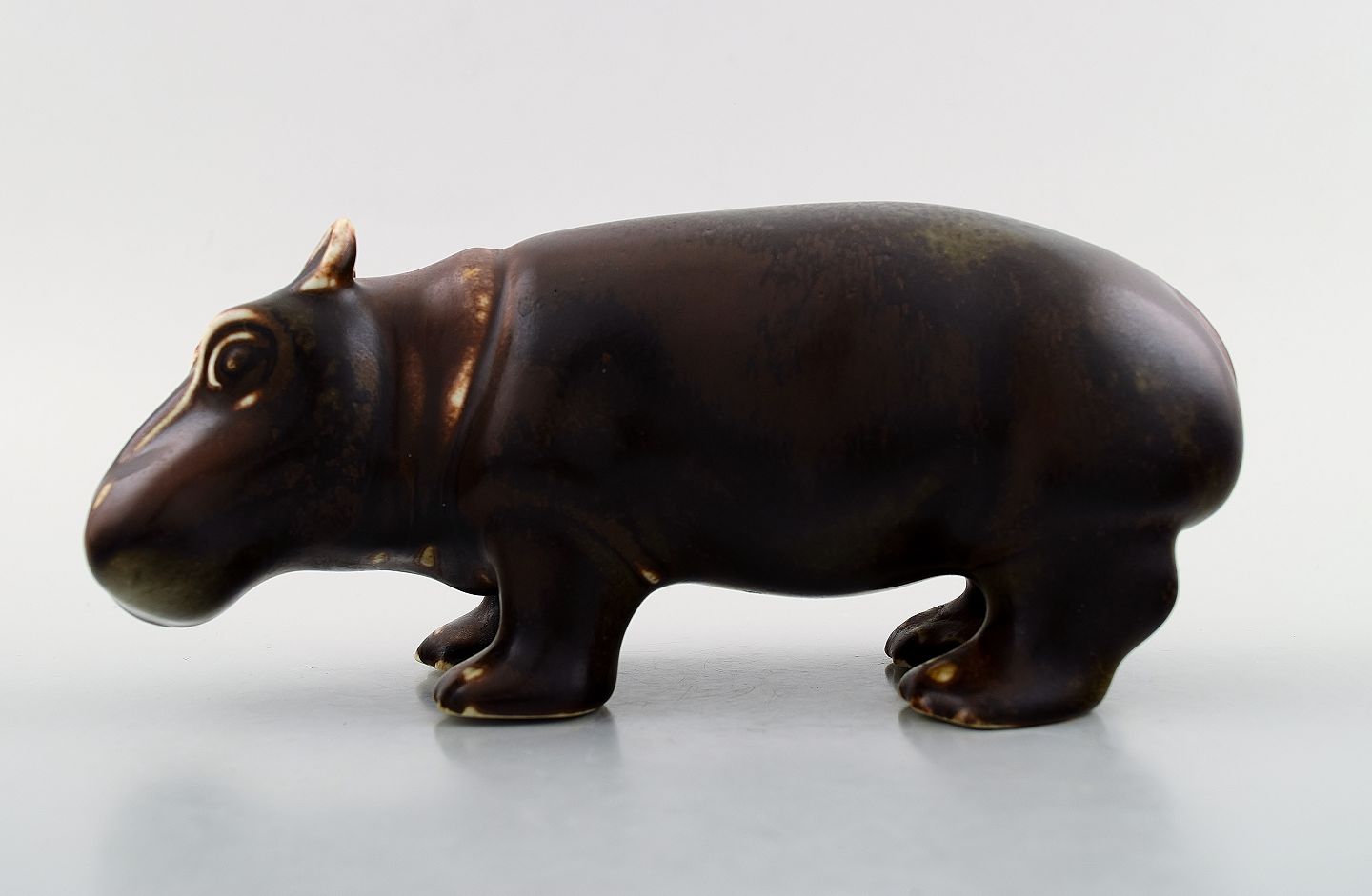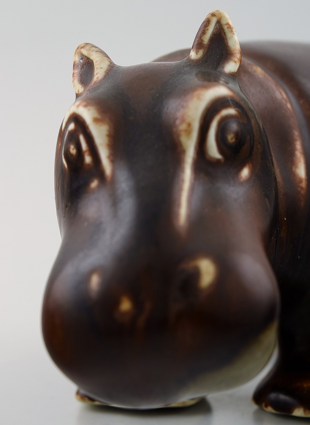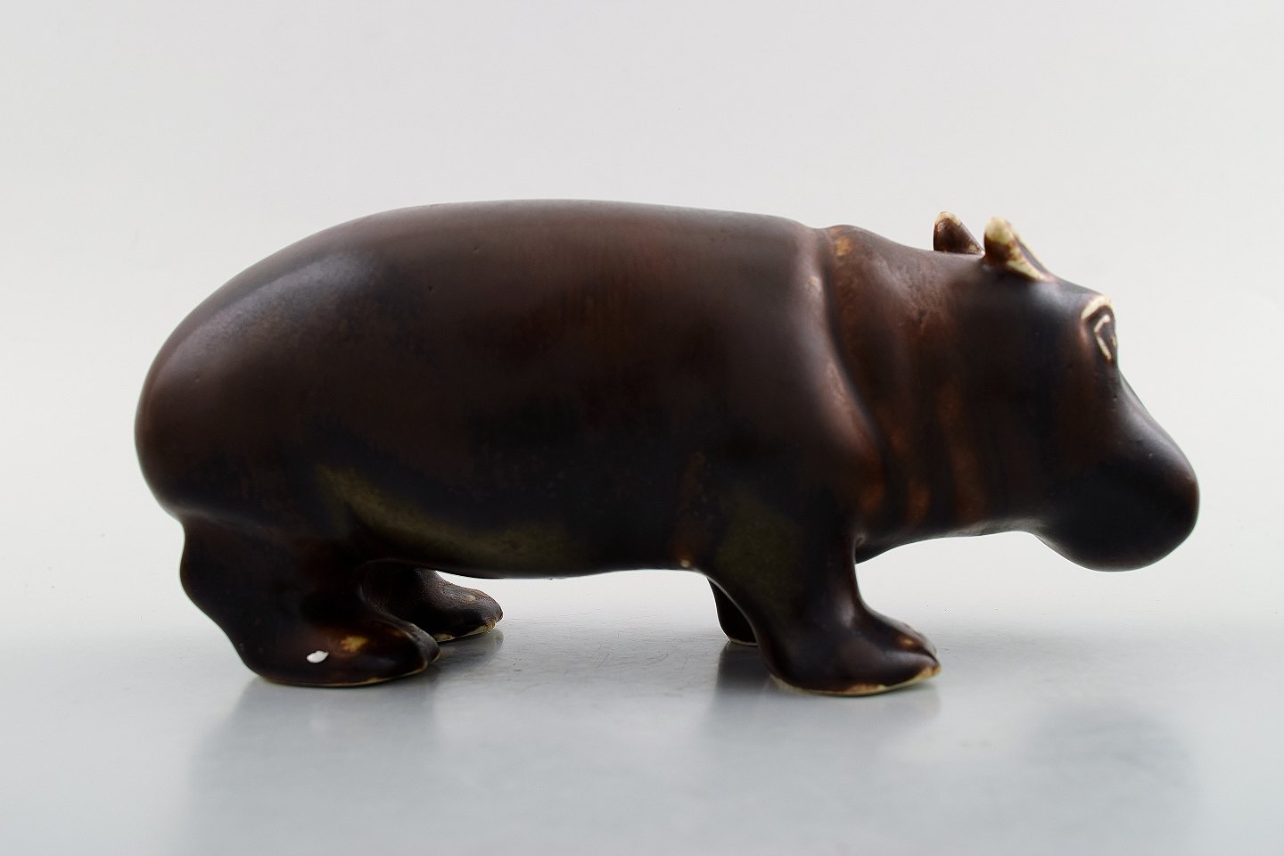 Sjælden Rörstrand stentøjsfigur af Gunnar Nylund, stående babyflodhest/flodhesteunge. I perfekt stand. 1. sortering. Måler 18,5 x 8,5 cm.