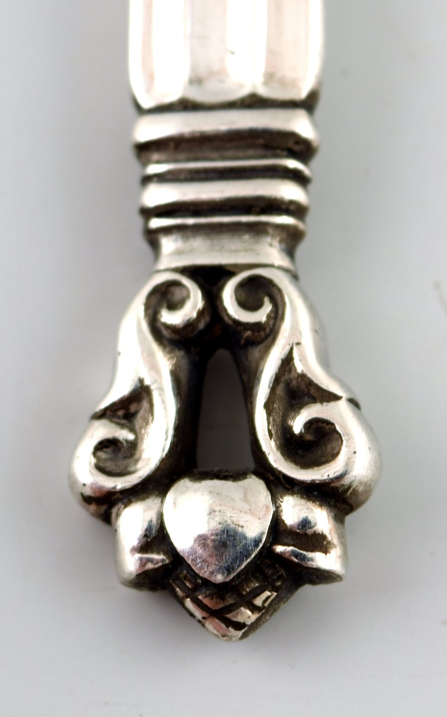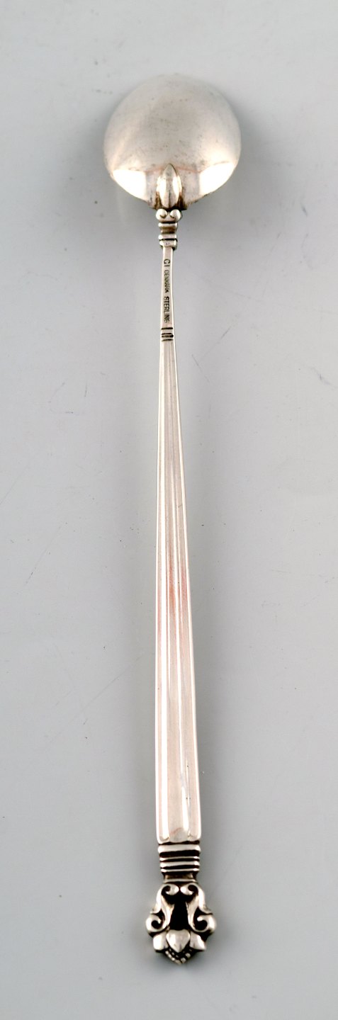 Meget tidlige Georg Jensen sølv "Konge" cocktailske/café latte ske. 6 stk. Designer: Johan Rohde. Længde: 18 cm. Sterlingsølv. Tidligt stemplet. 1908-1914.