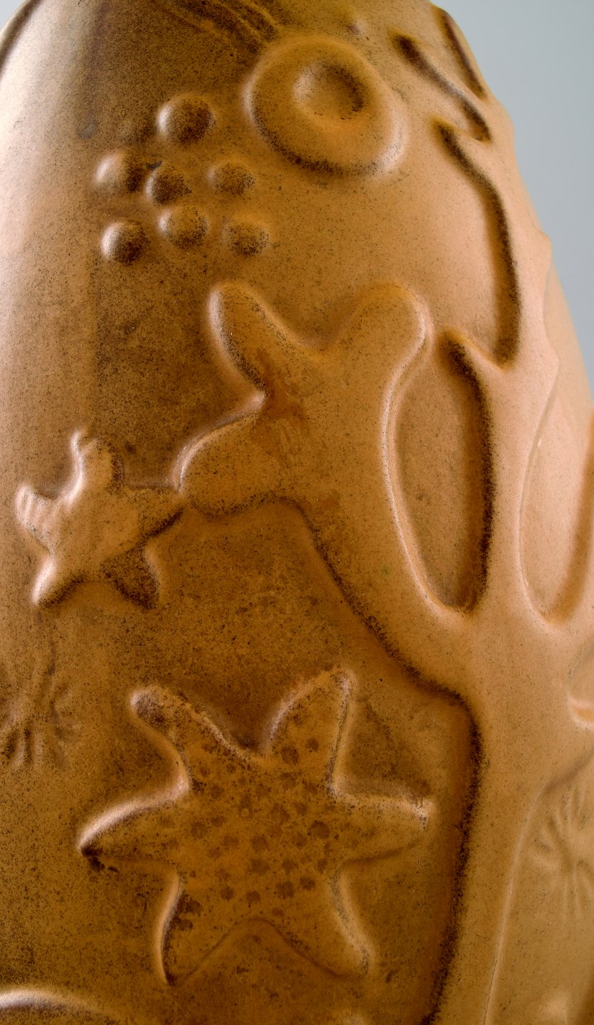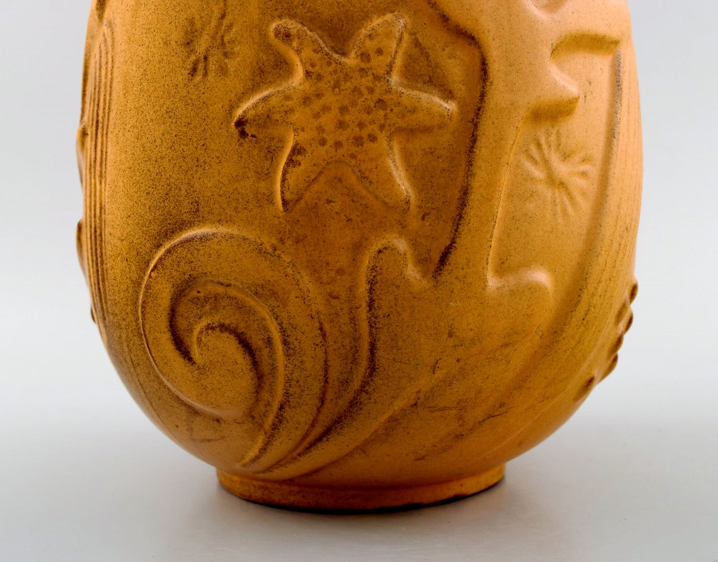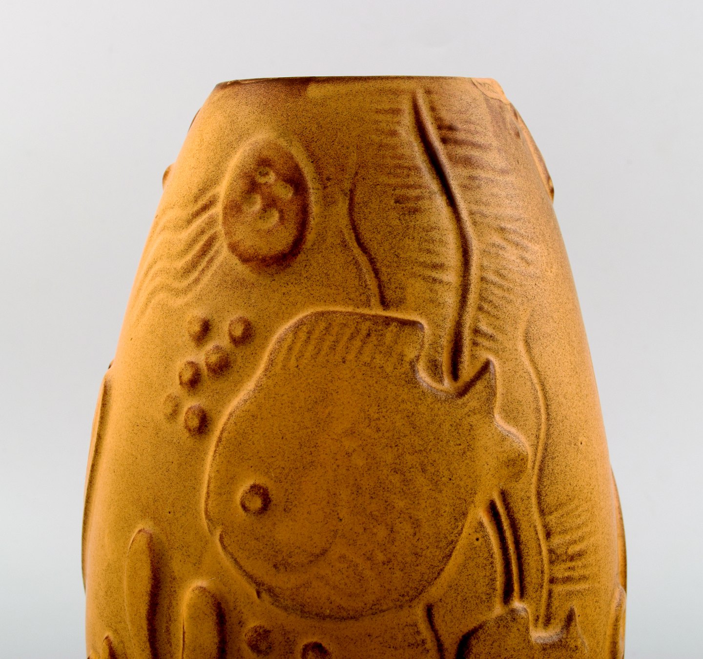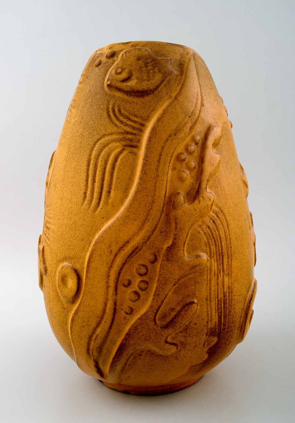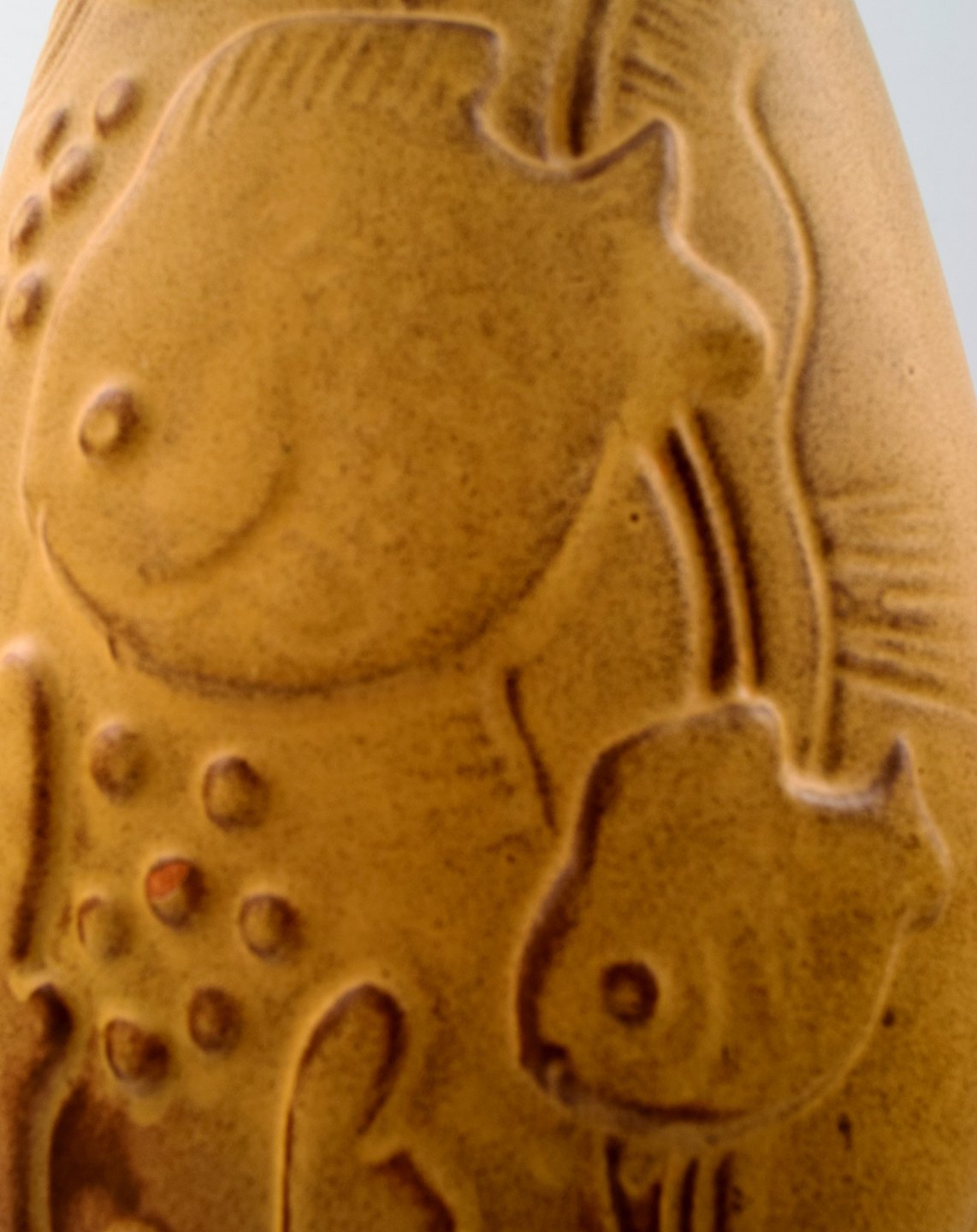 Mari Simmulson for Upsala-Ekeby keramikvase. Fisk i relief. Smuk glasur i gule nuancer. I perfekt stand. 1960´erne. Måler 27 x 17 cm. Stemplet.