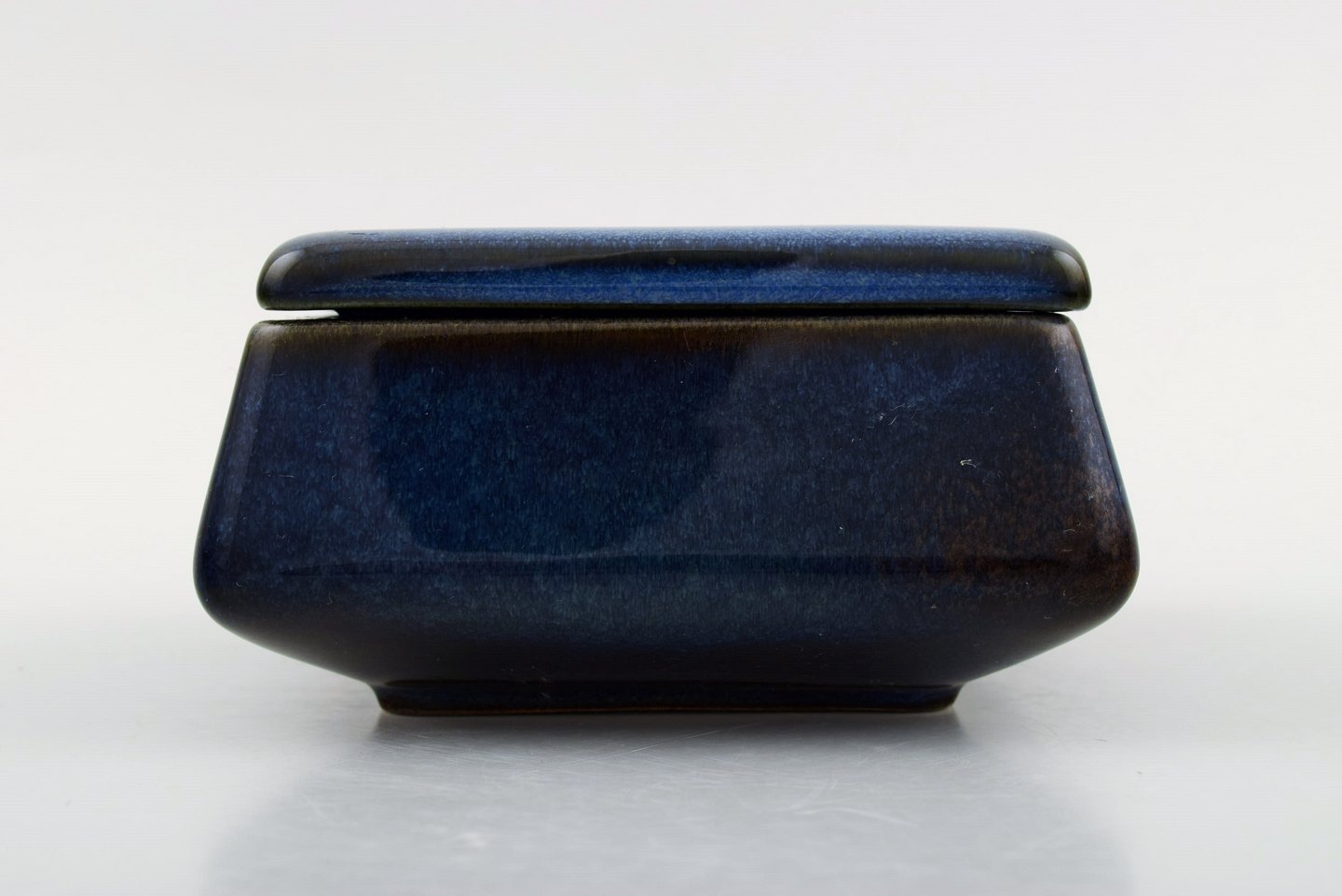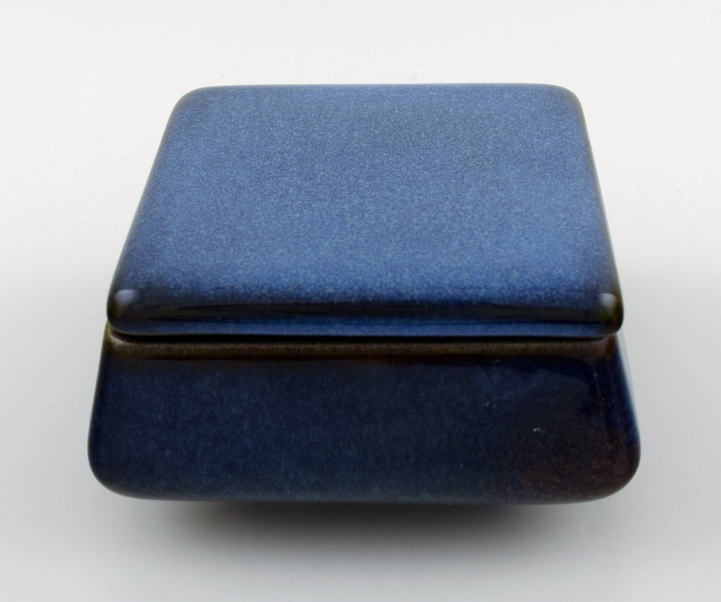 Vasen måler 13 cm. Lågkrukken måler 12 x 7 cm.